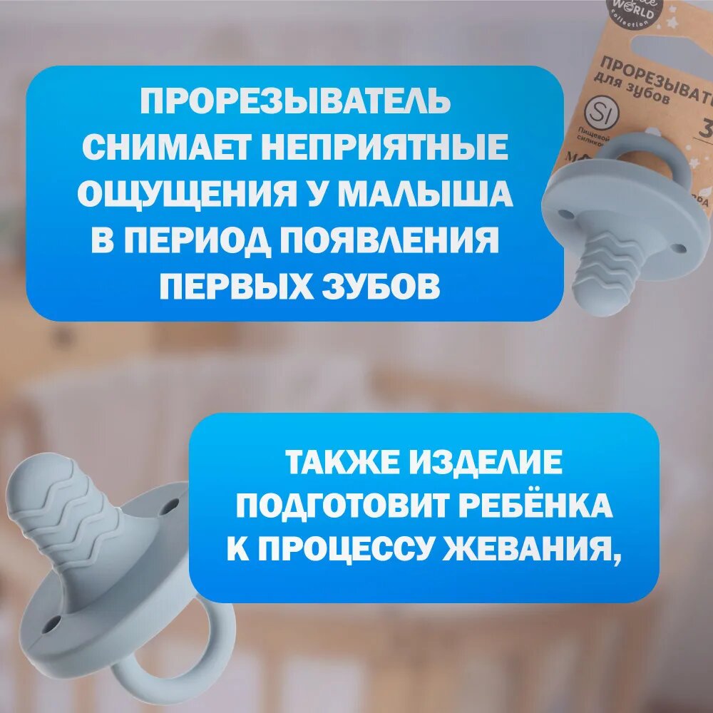 Прорезыватель - пустышка силиконовый, цвет синий/серый, Little world collection, Mum&Baby интересное: