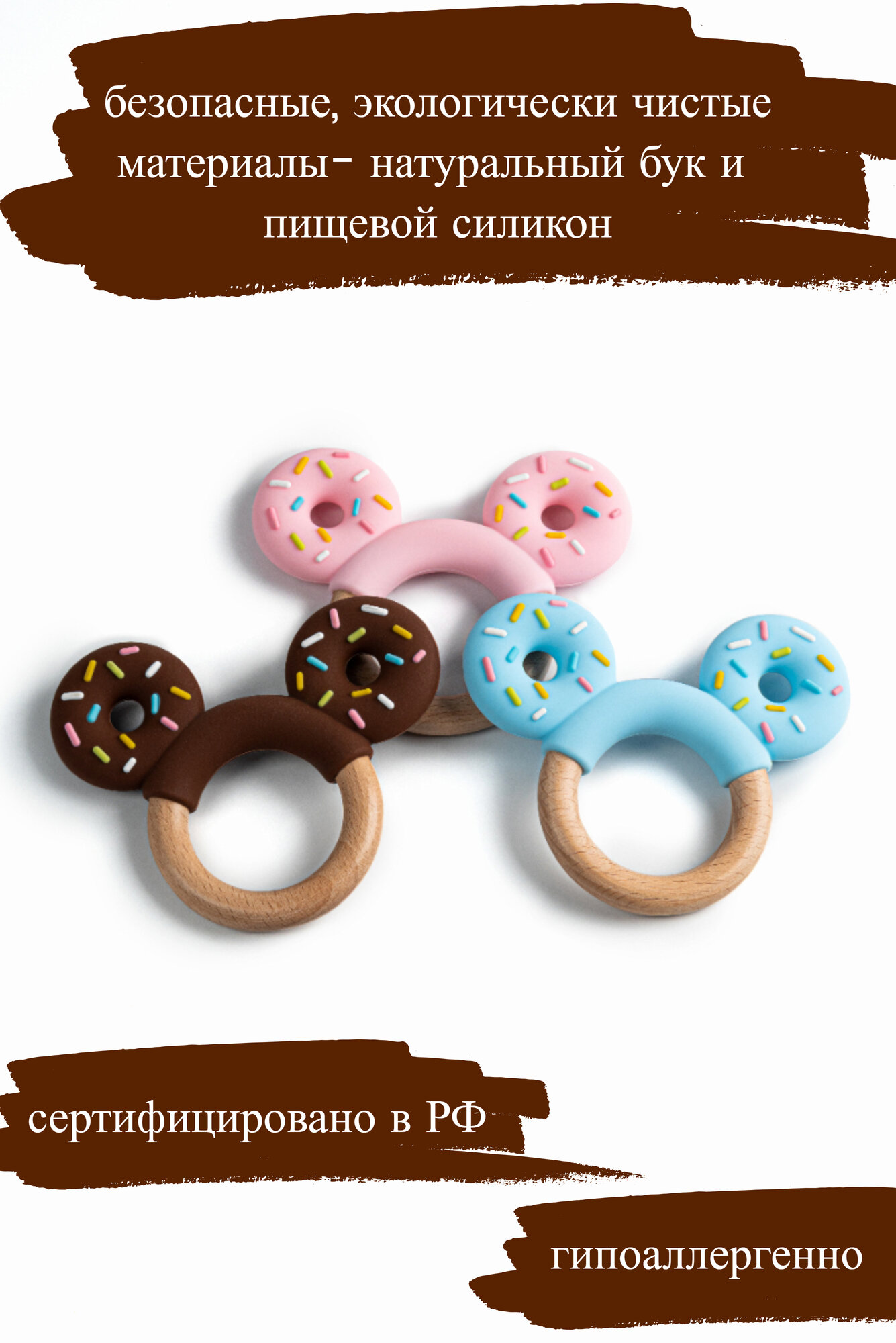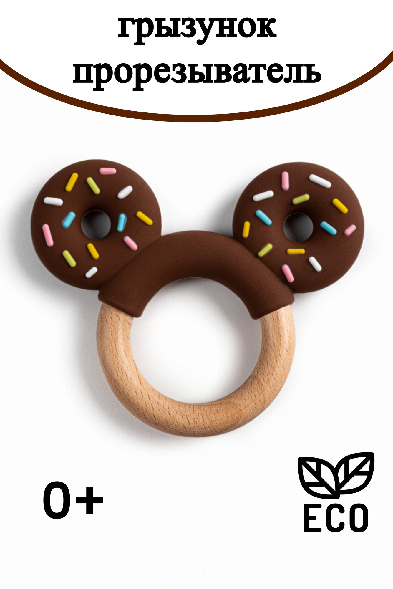 Грызунок прорезыватель для зубов силиконовый для малышей Lumberlogic пончик коричневый интересное: