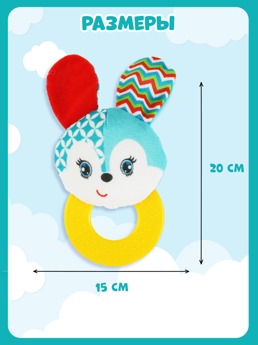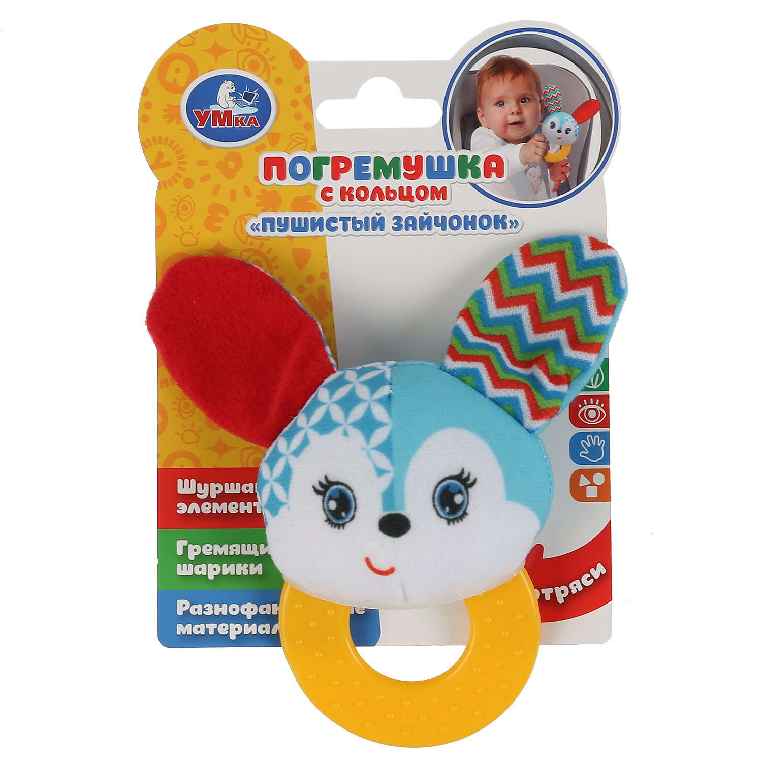 Текстильная игрушка погремушка с кольцом Умка Пушистый зайчонок интересное: