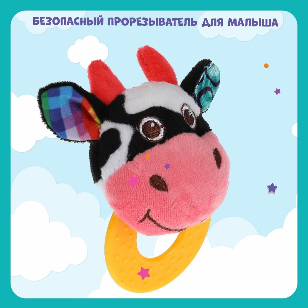 Текстильная игрушка погремушка Умка Корова с прорезывателем функциональная интересное: