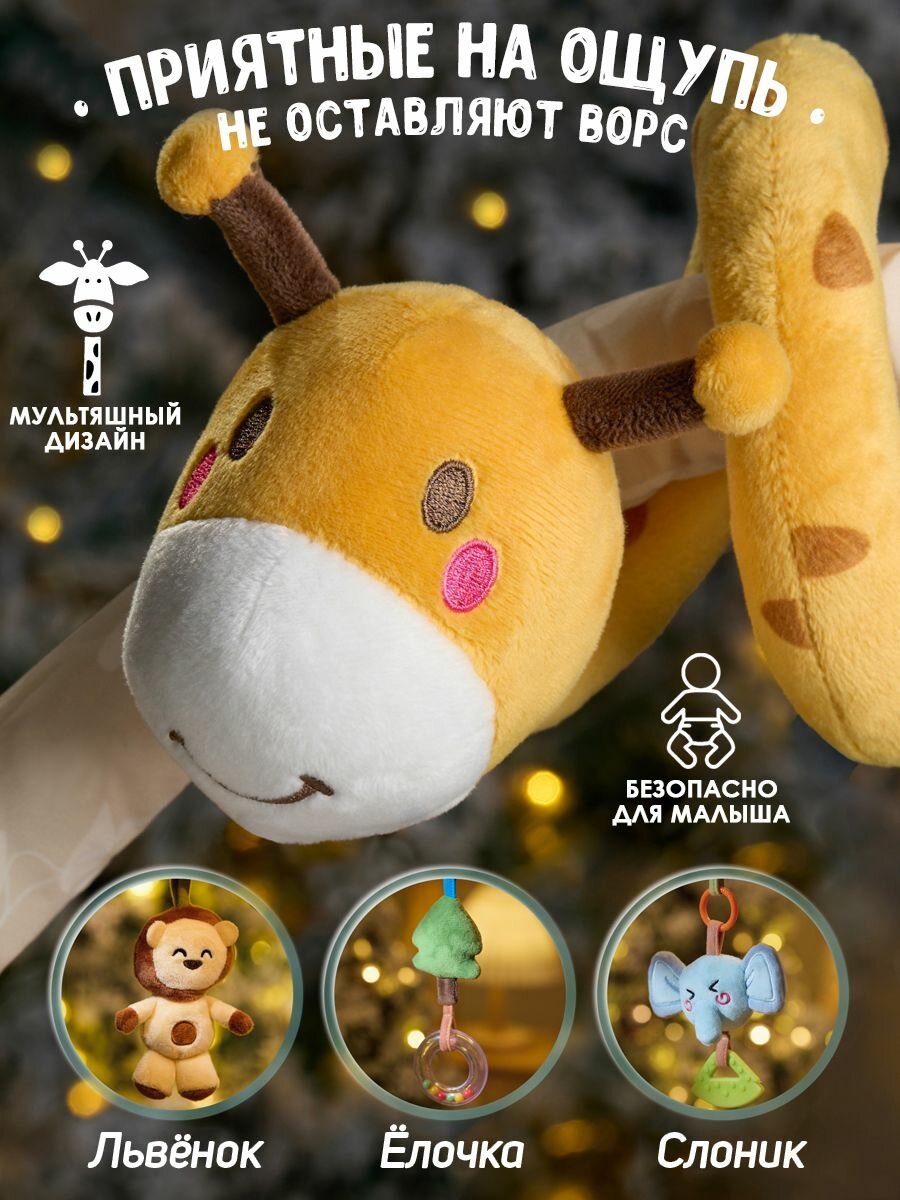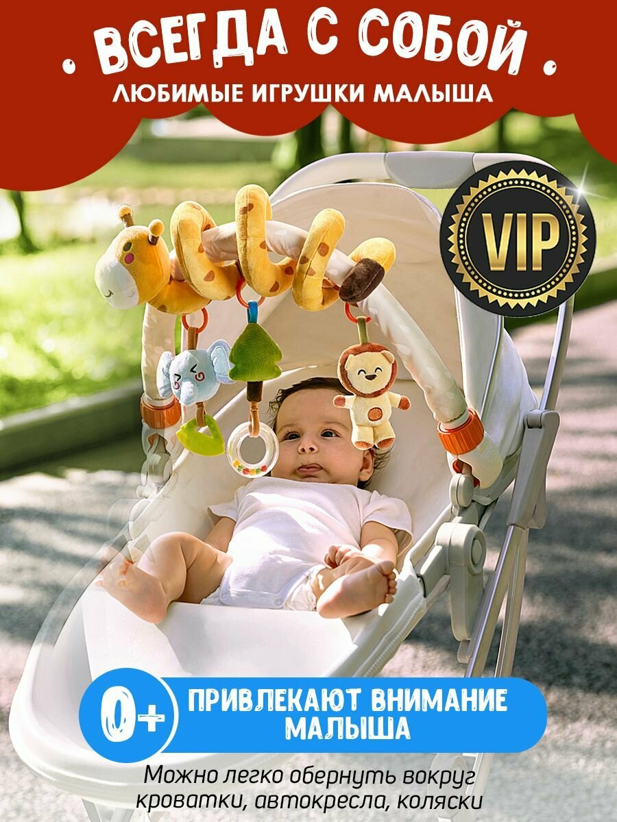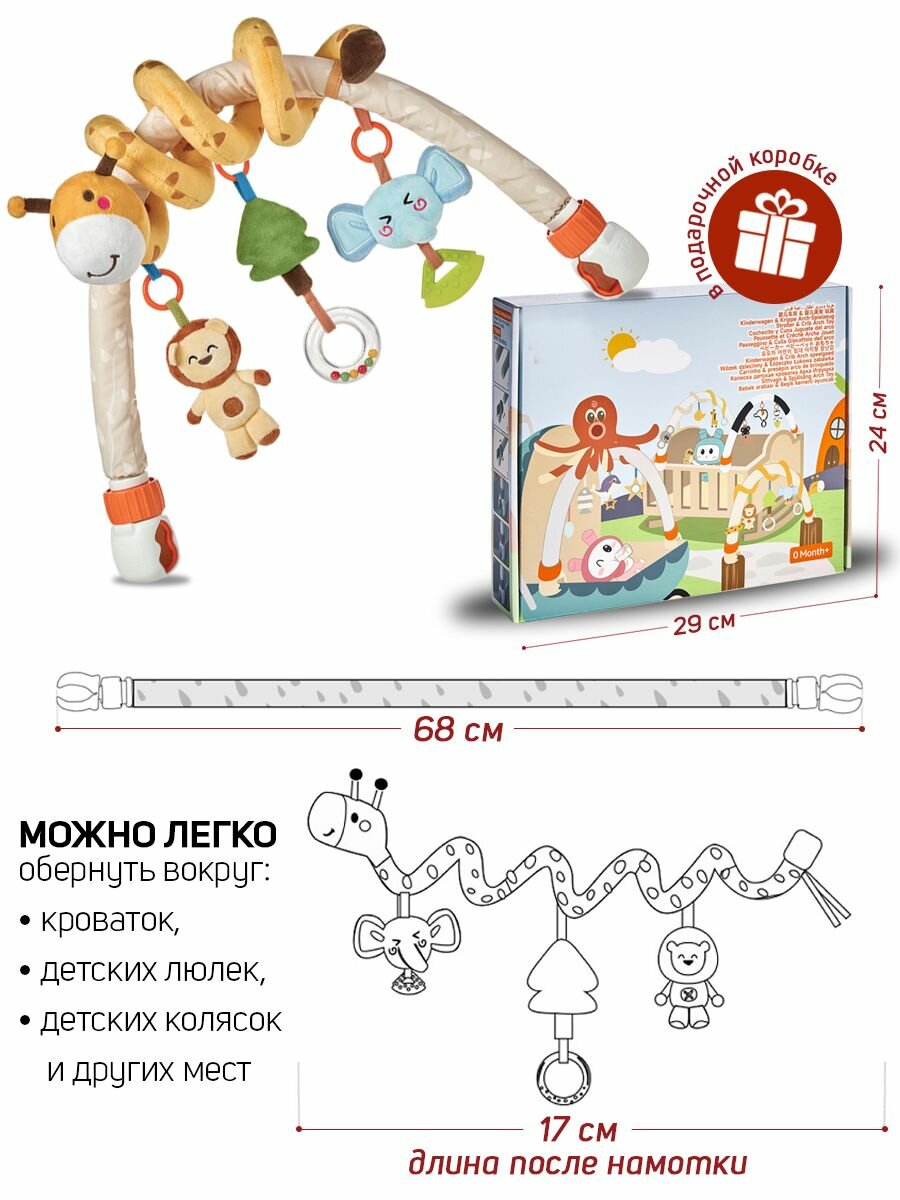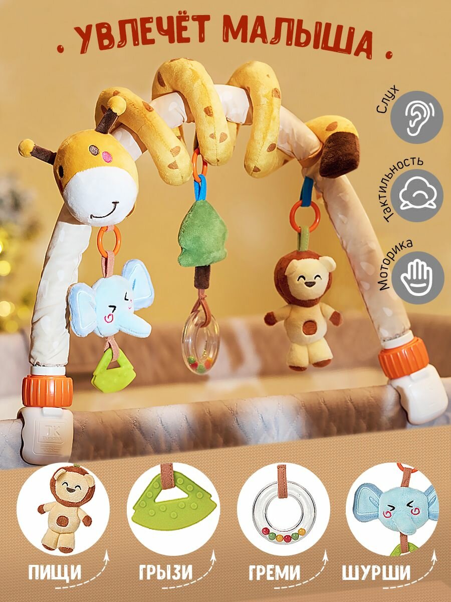Развивающая дуга с игрушками. Игрушки для новорожденных от 0. Cпираль растяжка на кроватку и коляску. Погремушка для новорожденного интересное: