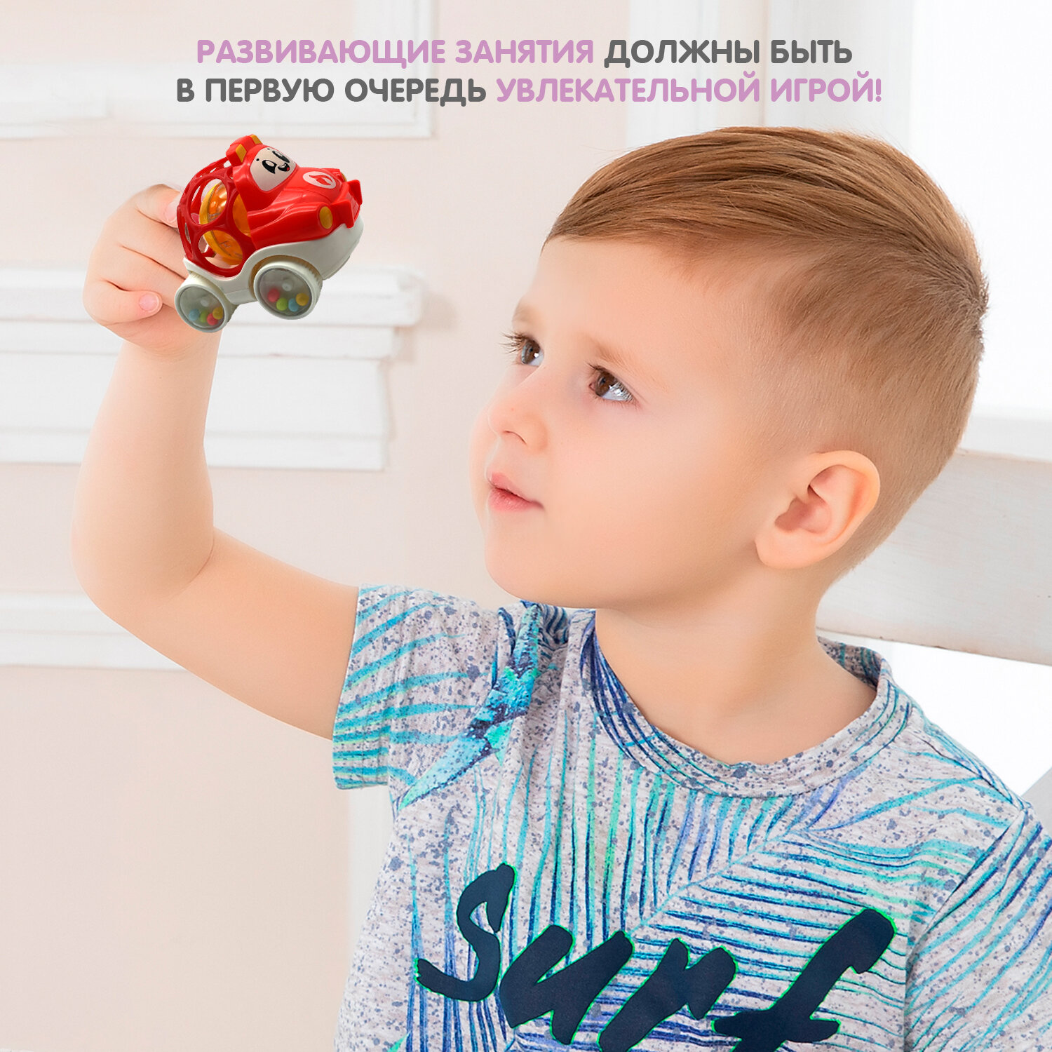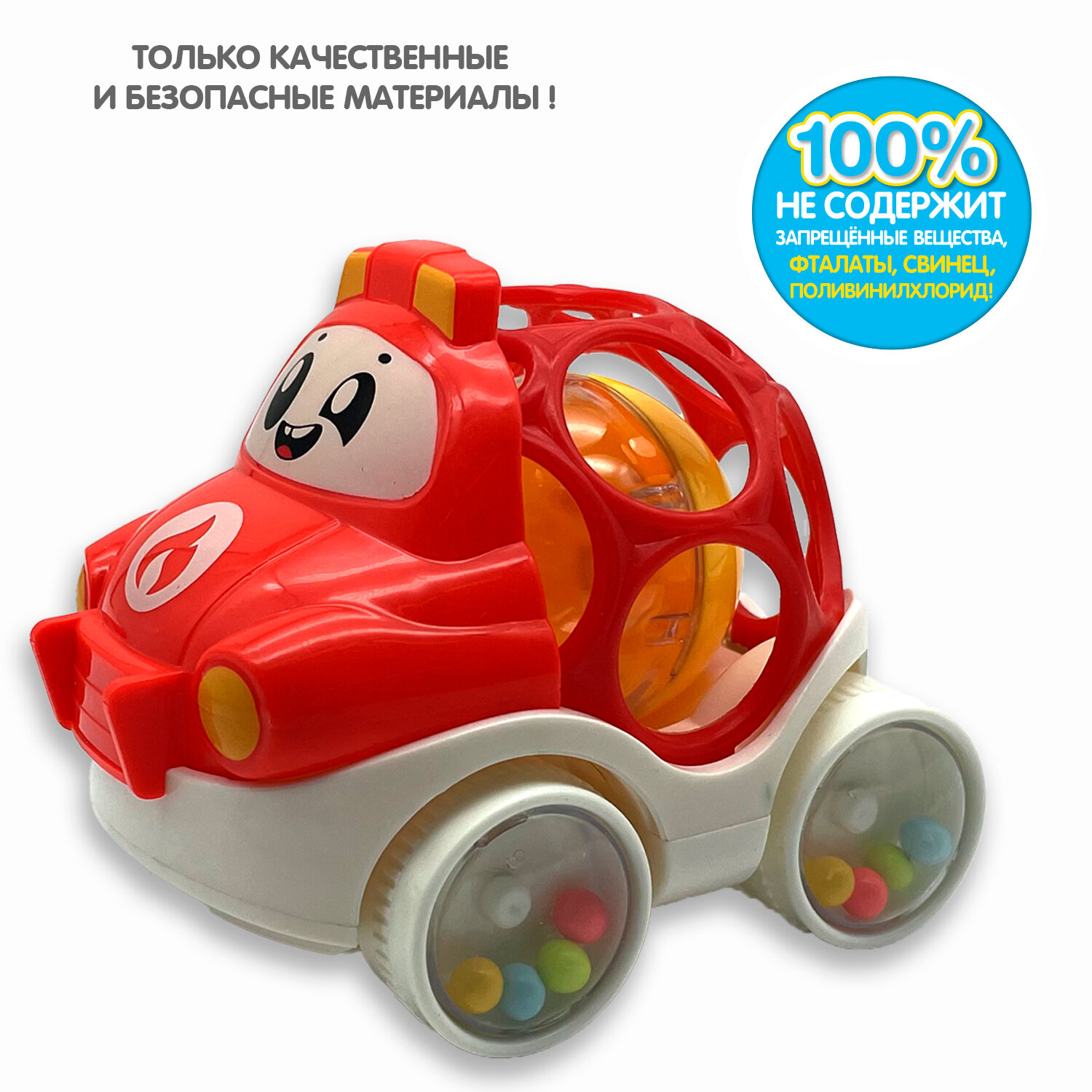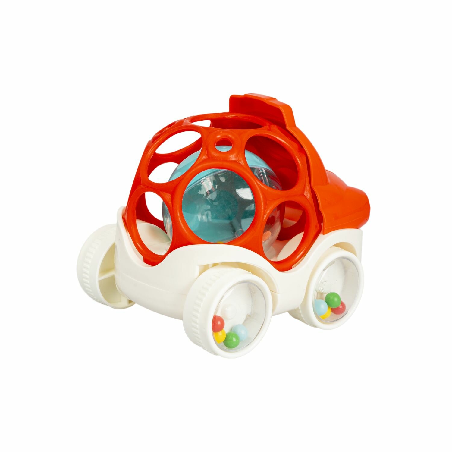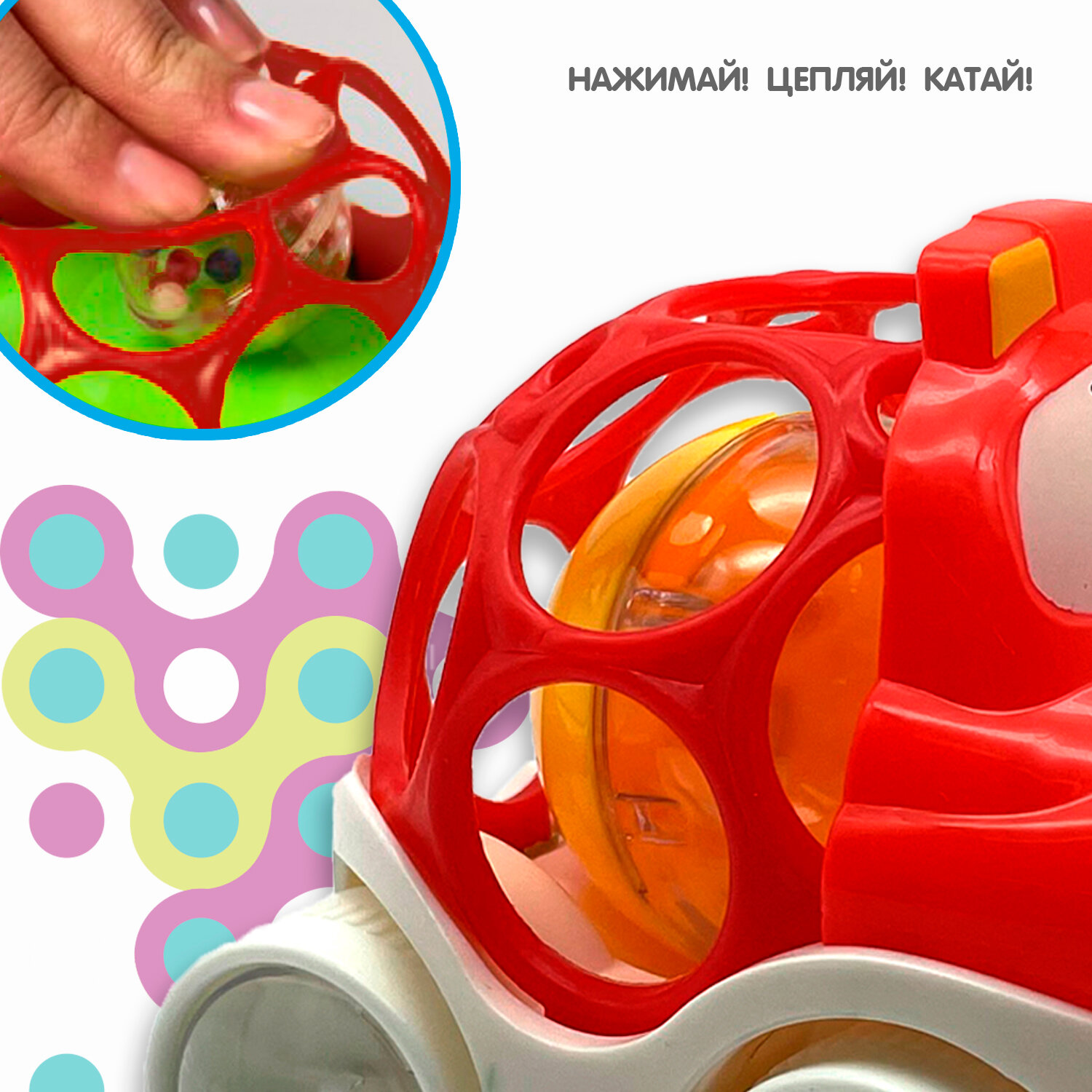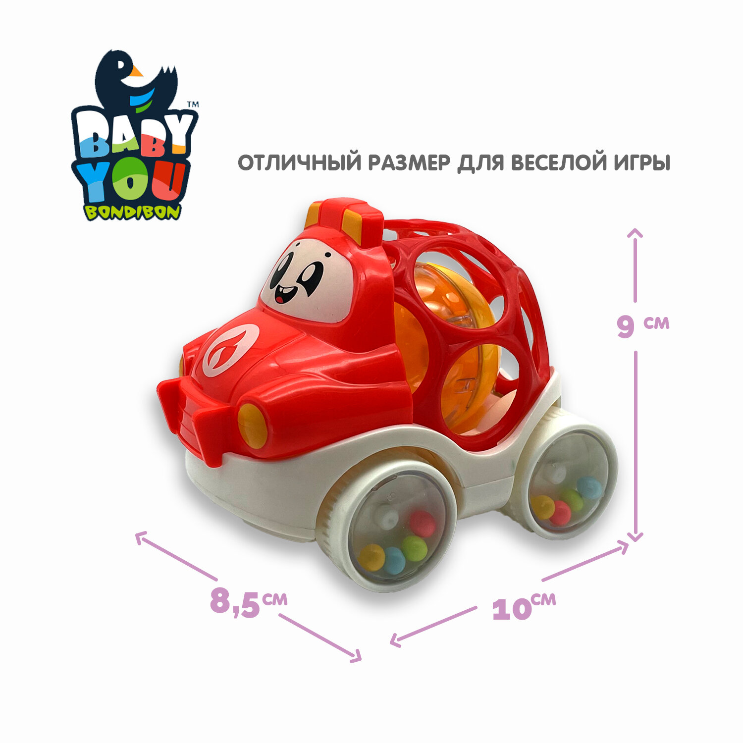 Купить Игр. разв. тактильная на колесах Bondibon, мягк. часть с шаром, красная, 8,5х8,5х10 см