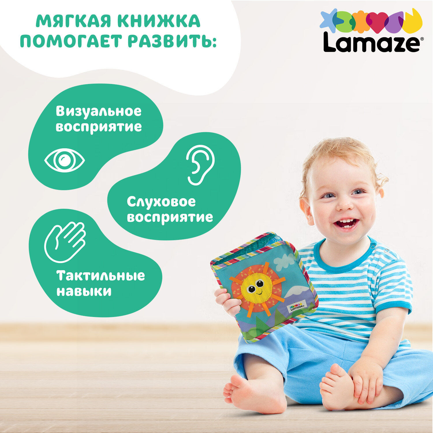 Купить Ламаз развивающая игрушка с подвесом для малышей Мягкая книжка первых открытий Lamaze
