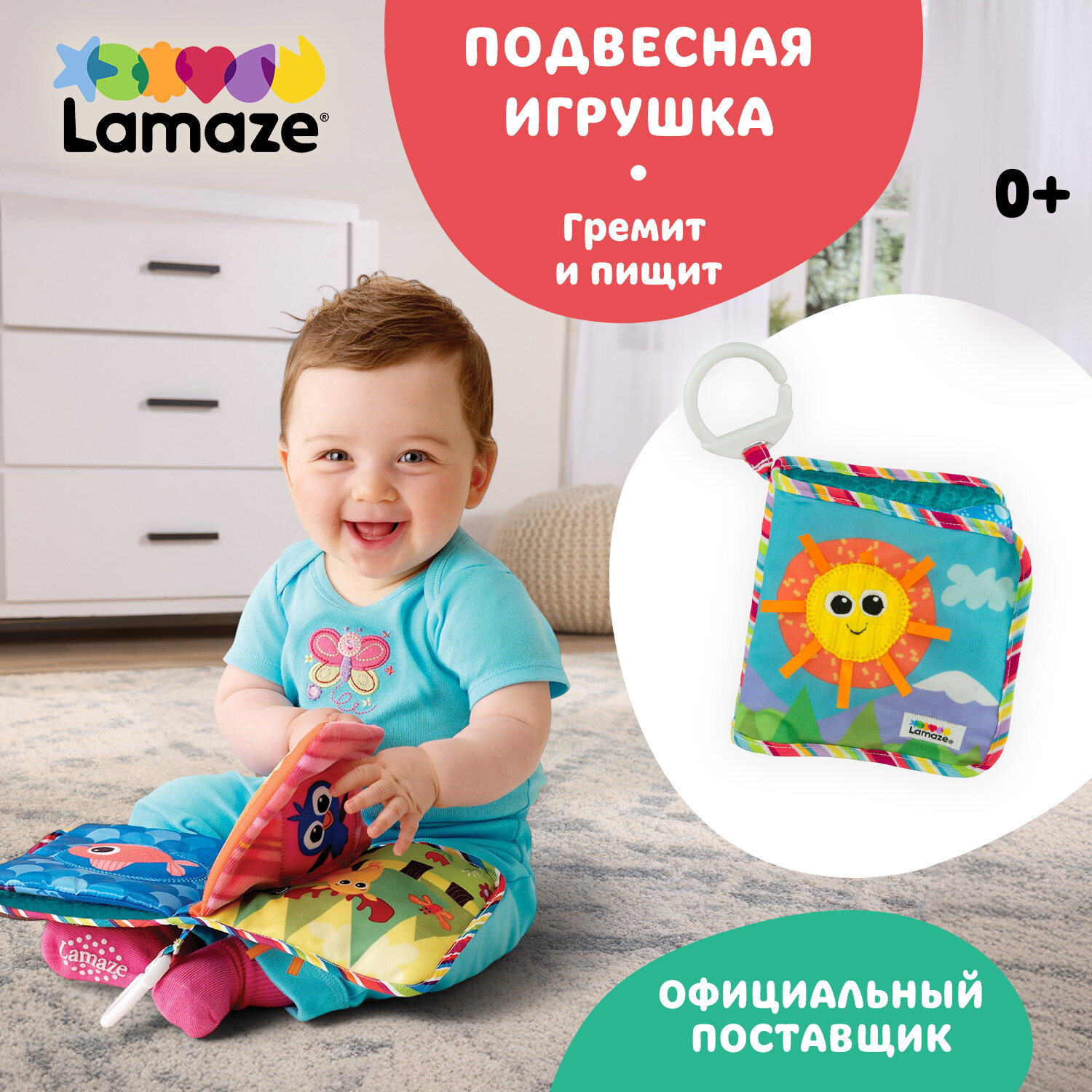 СохранитьЛамаз развивающая игрушка с подвесом для малышей Мягкая книжка первых открытий Lamaze интересное: