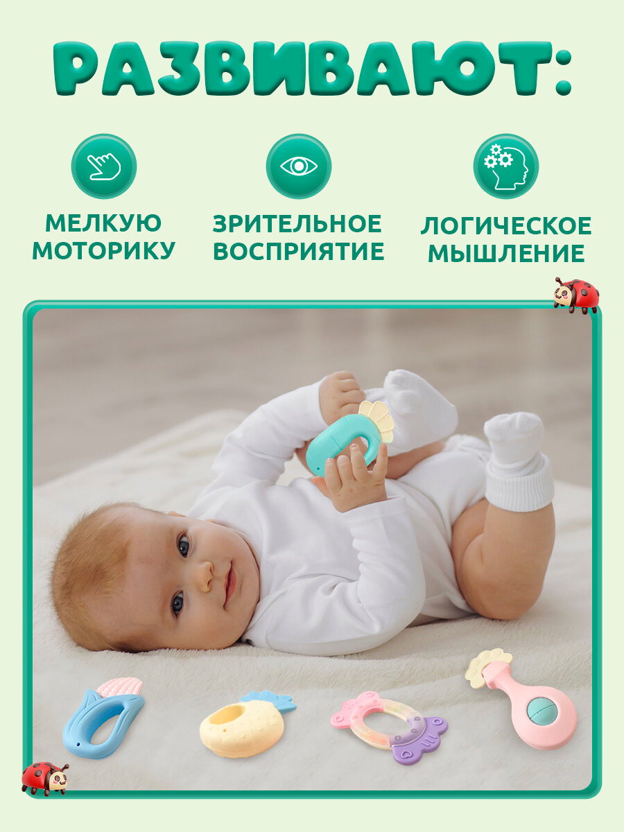 Набор Погремушек для новорожденного 0+/ Подарочный набор с прорезывателем интересное:
