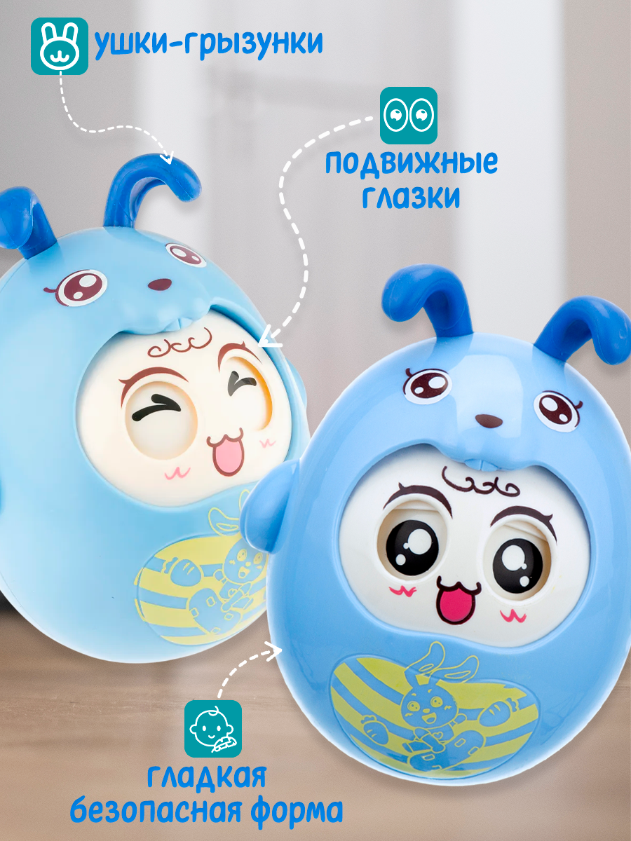 Неваляшка Зайчик синий Elefantino, пластик, звук колокольчика, подвижная интересное: