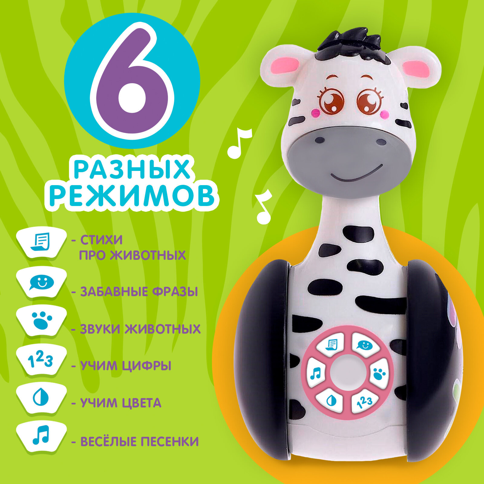 Музыкальная игрушка "Зебра Гого" развивающая неваляшка, ZABIAKA интересное: