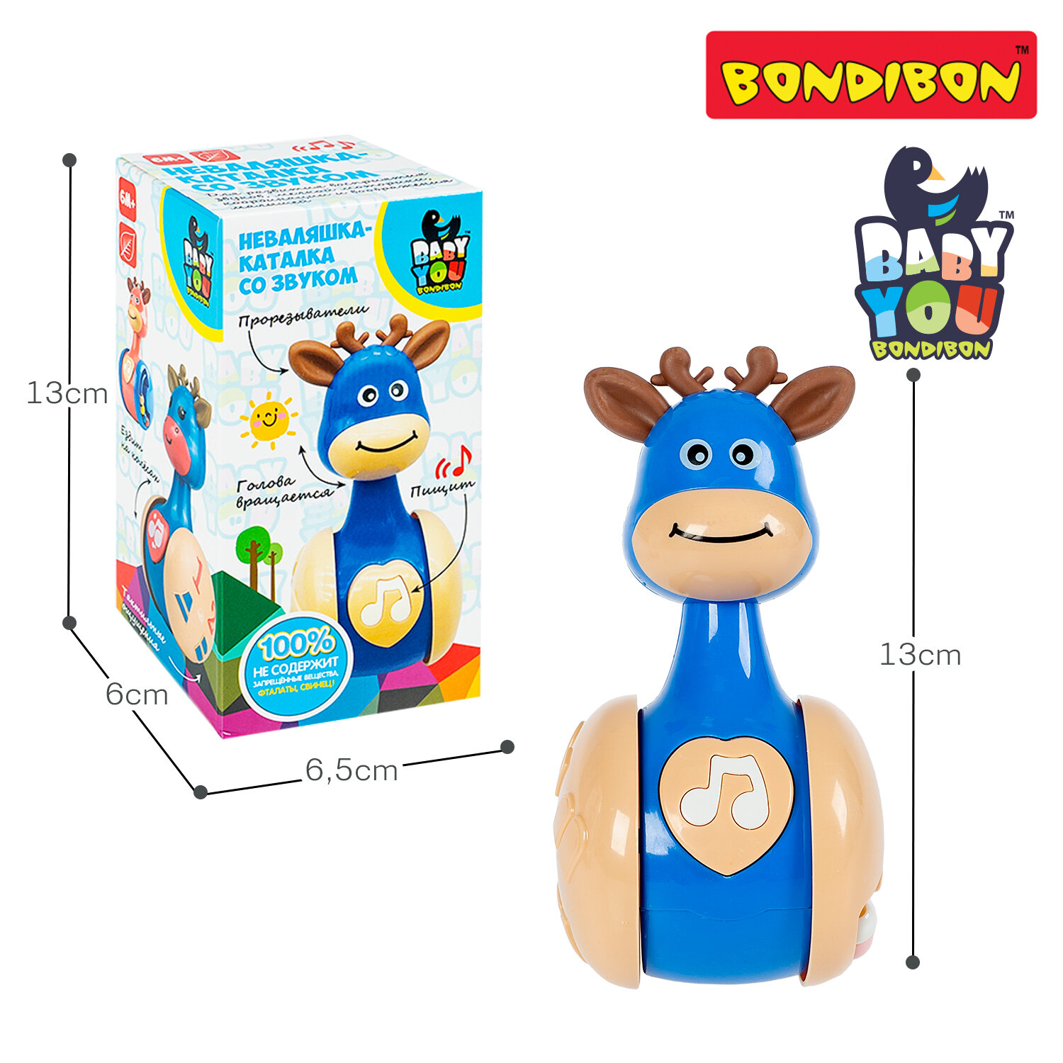 Купить Неваляшка-каталка «Оленёнок» BABY YOU BONDIBON, голуб. цвет, прорезыватели, звук, BOX