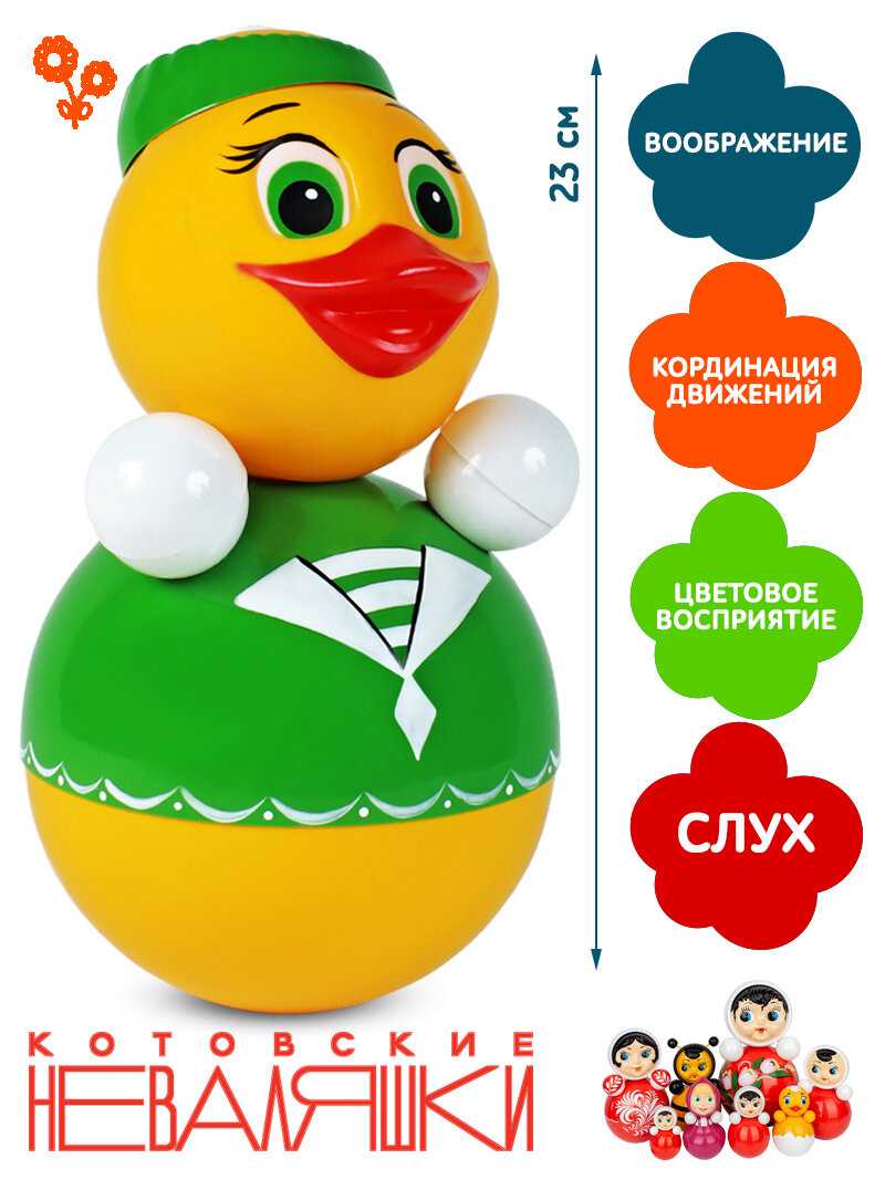 Неваляшка для малышей Утка моряк 22 см музыкальная игрушка кукла Котовские Неваляшки интересное: