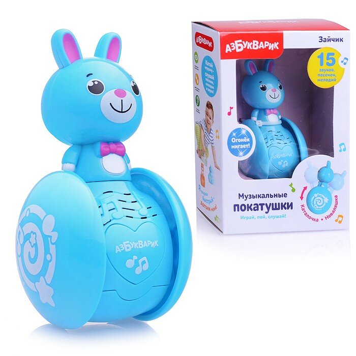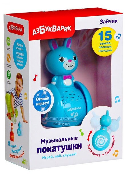 Неваляшка Азбукварик Музыкальные покатушки Зайчик 9.4 см голубой интересное: