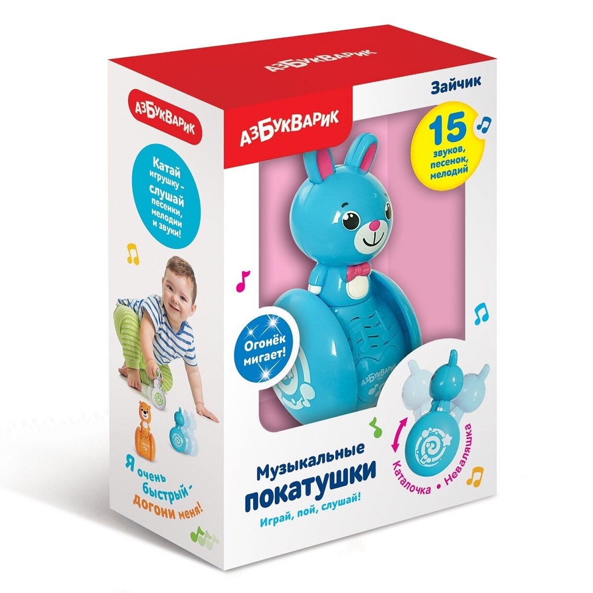Купить Неваляшка Азбукварик Музыкальные покатушки Зайчик 9.4 см голубой