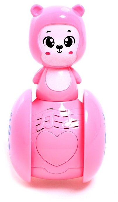 Купить Развивающая игрушка "Музыкальная неваляшка "Мишка Роро" для малышей со звуковыми и световыми эффектами, ванька-встанька, поворот на 270 градусов, цвет розовый