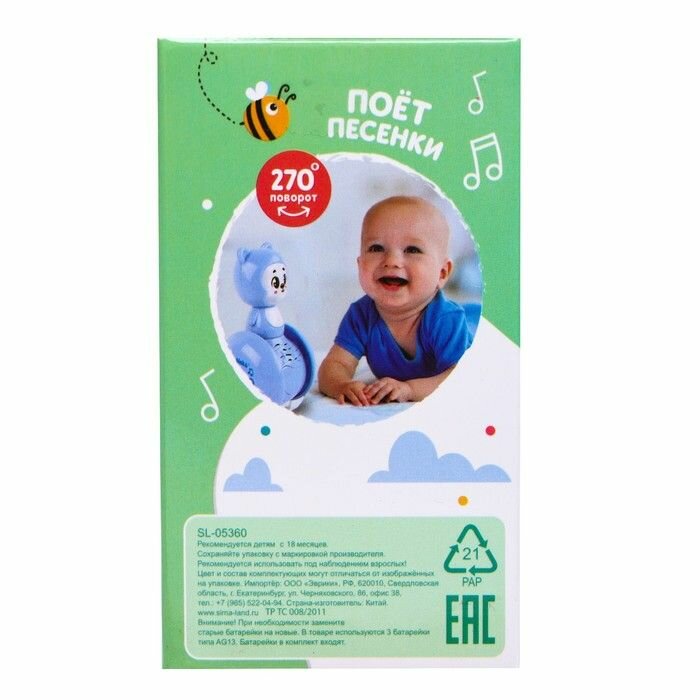 Музыкальная неваляшка ZABIAKA "Мишка Роро" голубой, в коробке (MYJ268-7) интересное: