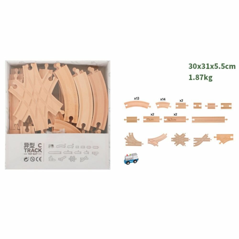 Набор дополнительных рельс для детской деревянной железной дороги, 47 элементов