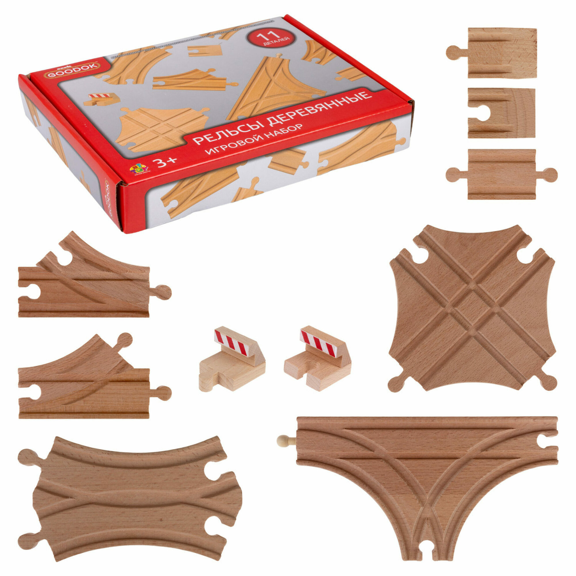 Купить Рельсы для деревянной железной дороги 1TOY Goodok базовые с развилками и тупиками, 11 шт.