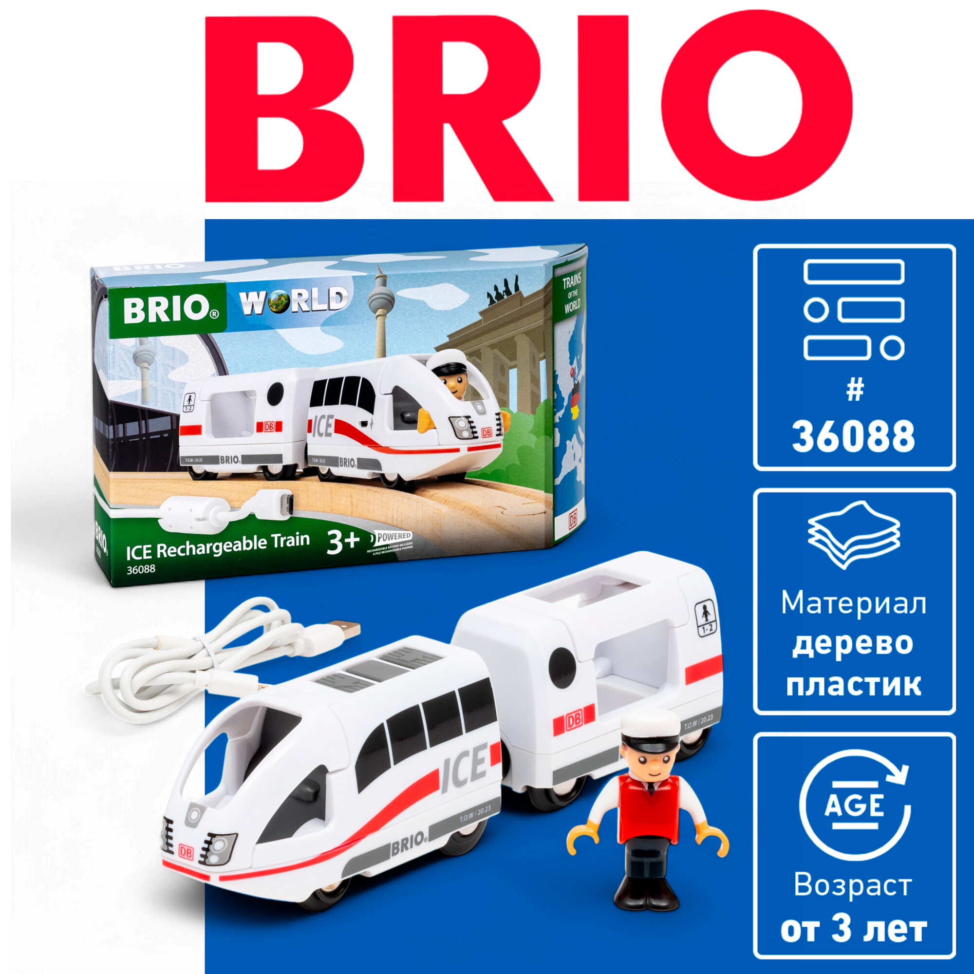 Купить BRIO 36088 – Аккумуляторный поезд ICE белый, с аккумулятором