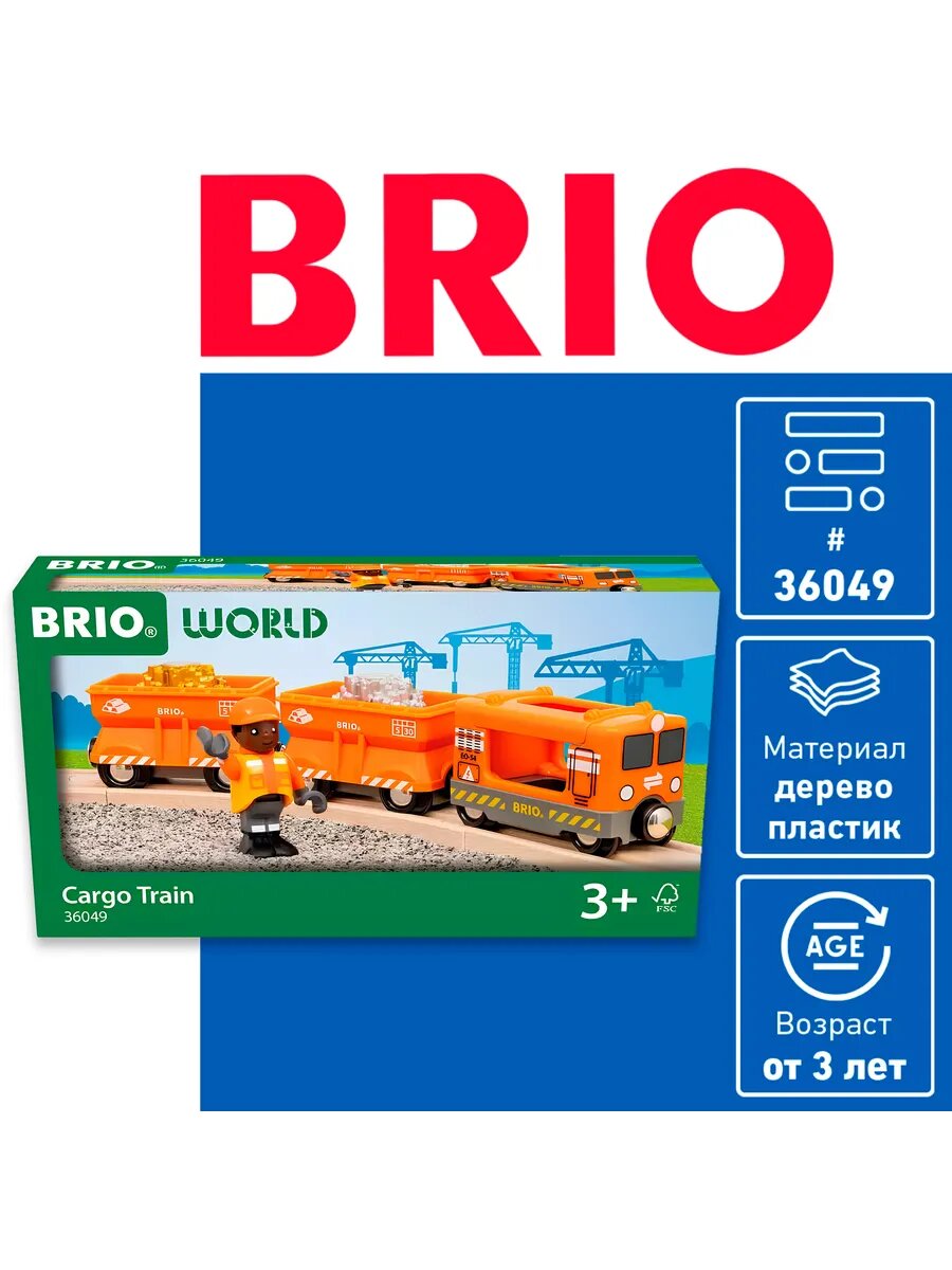 Купить BRIO 36049 – Грузовой поезд Брио, оранжевый, с 2 вагонами и магнитной сцепкой