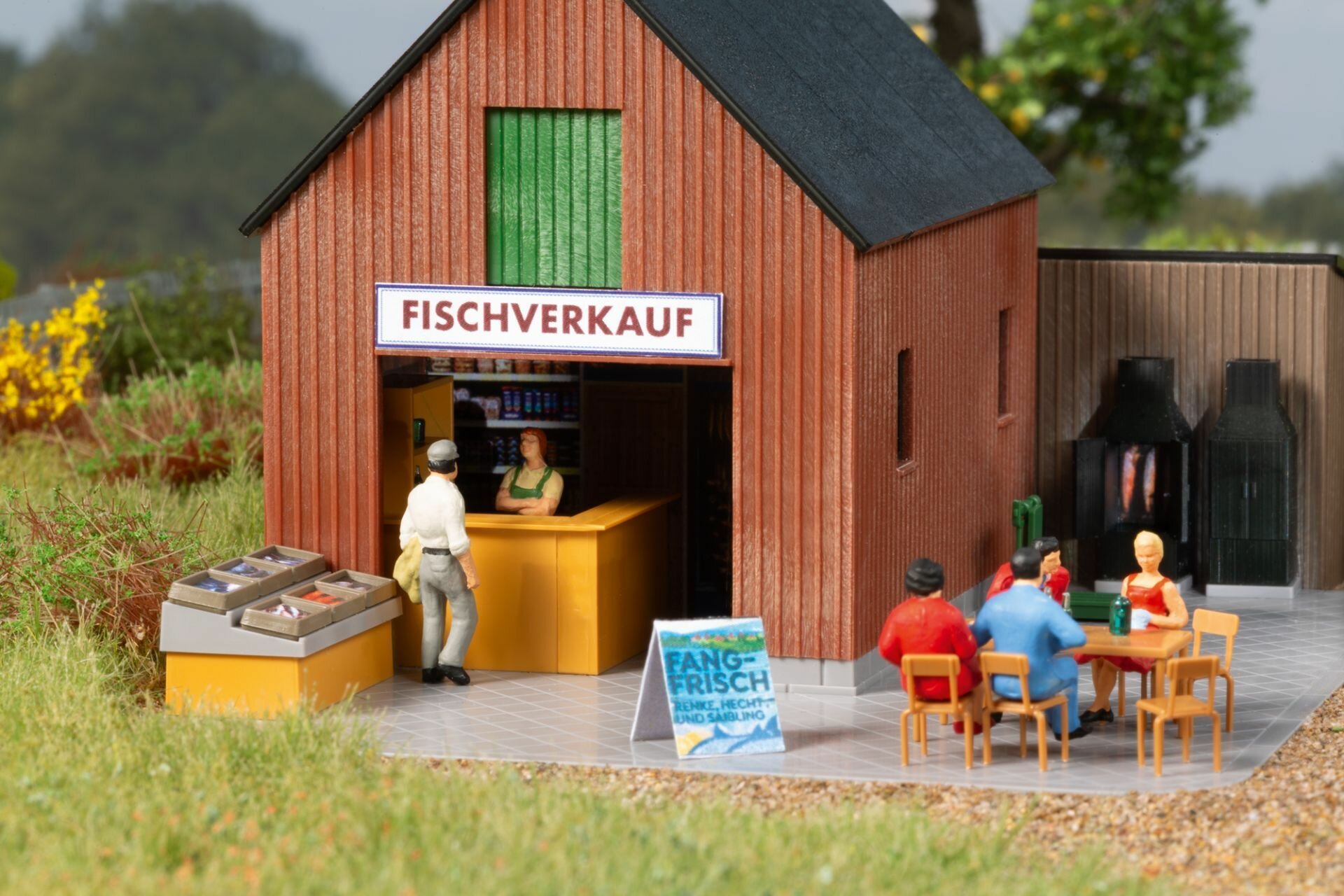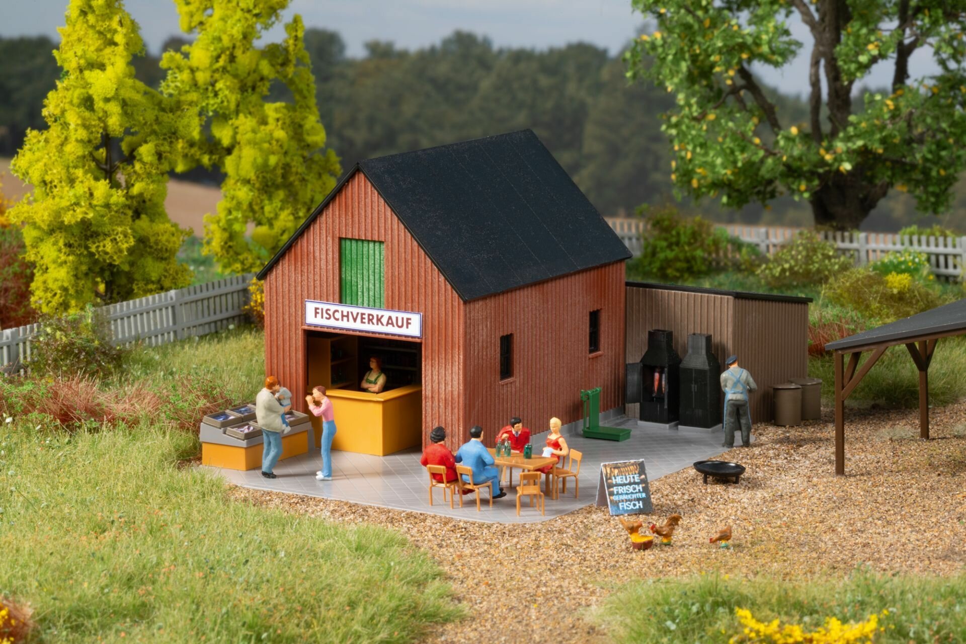 11475 Auhagen Элемент игрушечной ж/д - Рыбный магазин с коптильней H0 1:87 16,5мм интересное: