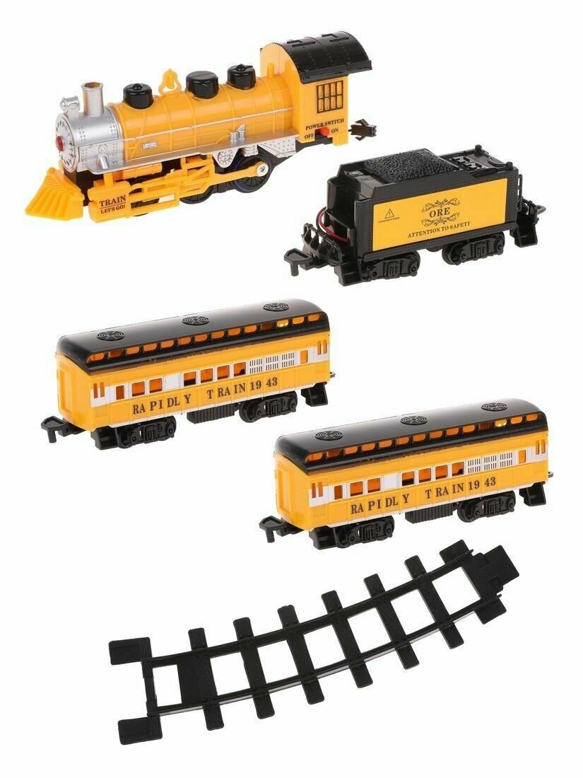 Купить Игровой набор Железная дорога, в комплекте деталей 16шт, поезд, вагон 3шт, батарейки АА*4шт. не входят, коробка