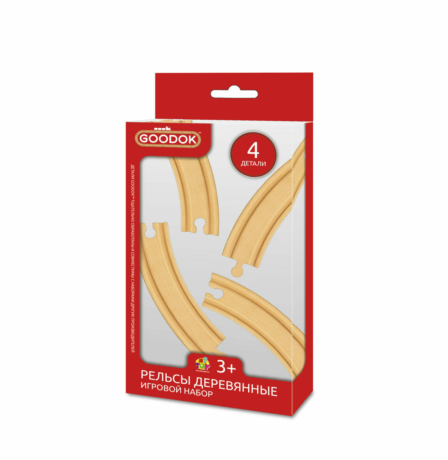Купить Рельсы для поезда 1TOY и деревянной железной дороги деревянный городок Goodok изогнутые длинные 4 шт