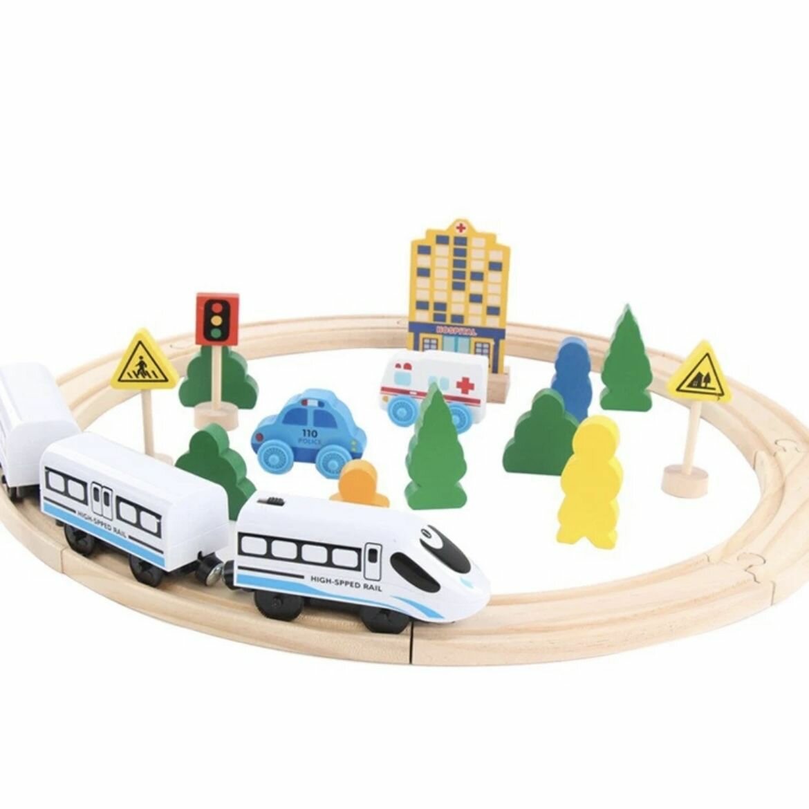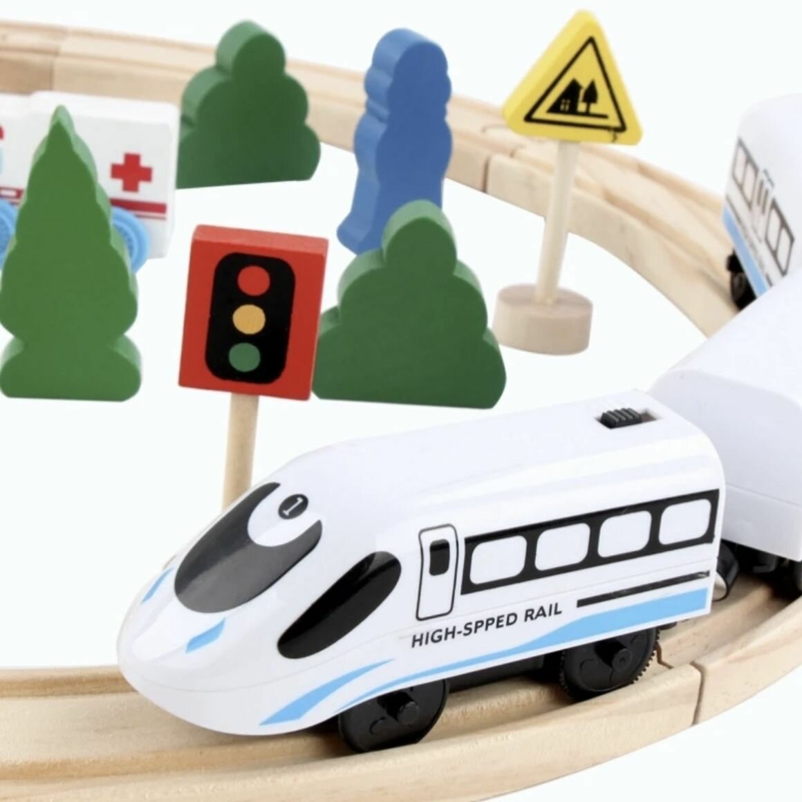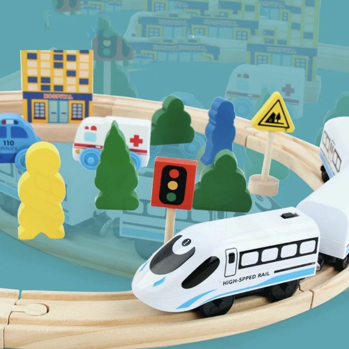 Купить Детская деревянная железная дорога с поездом, подходит для мальчиков и девочек от 3 лет