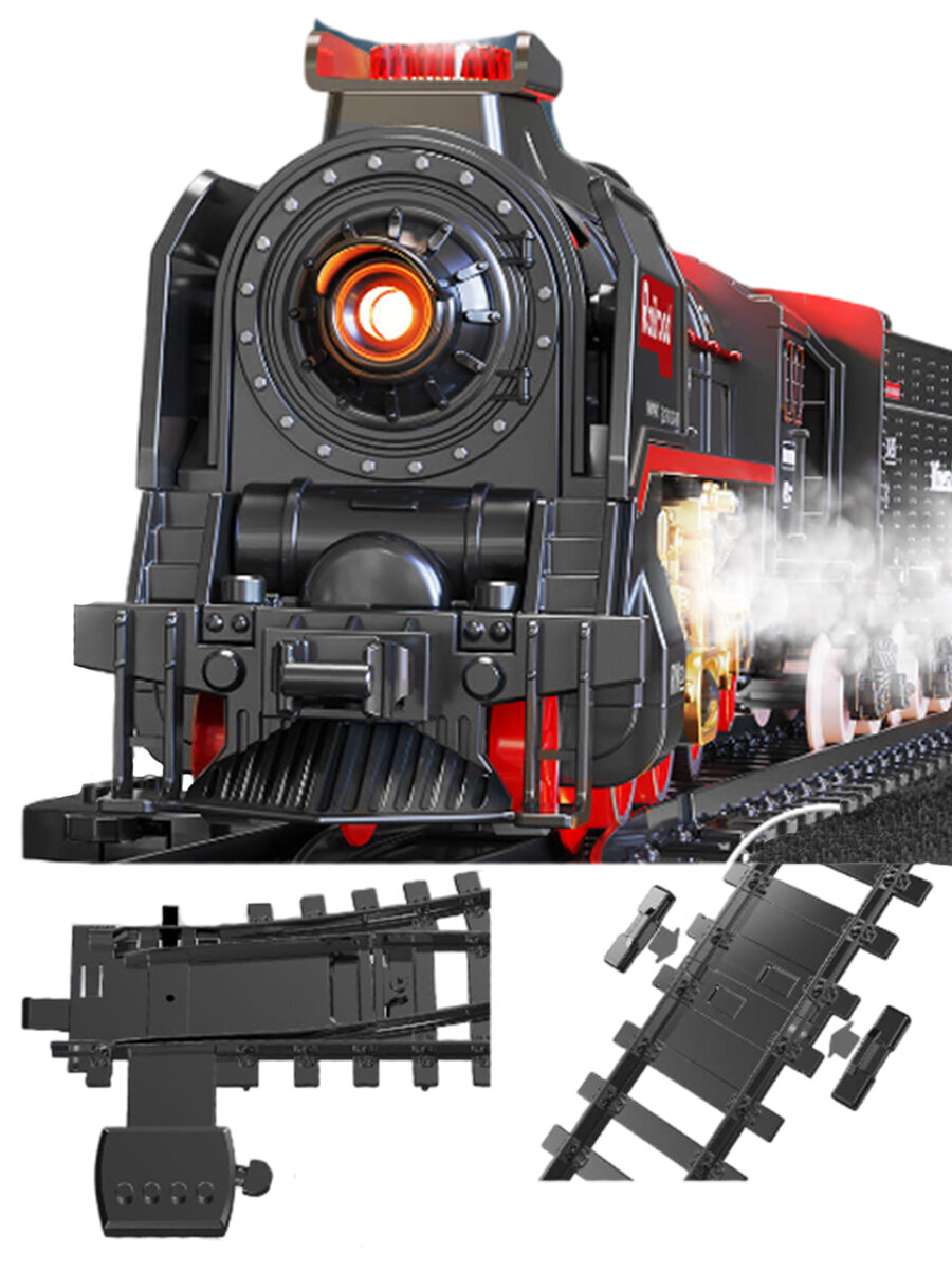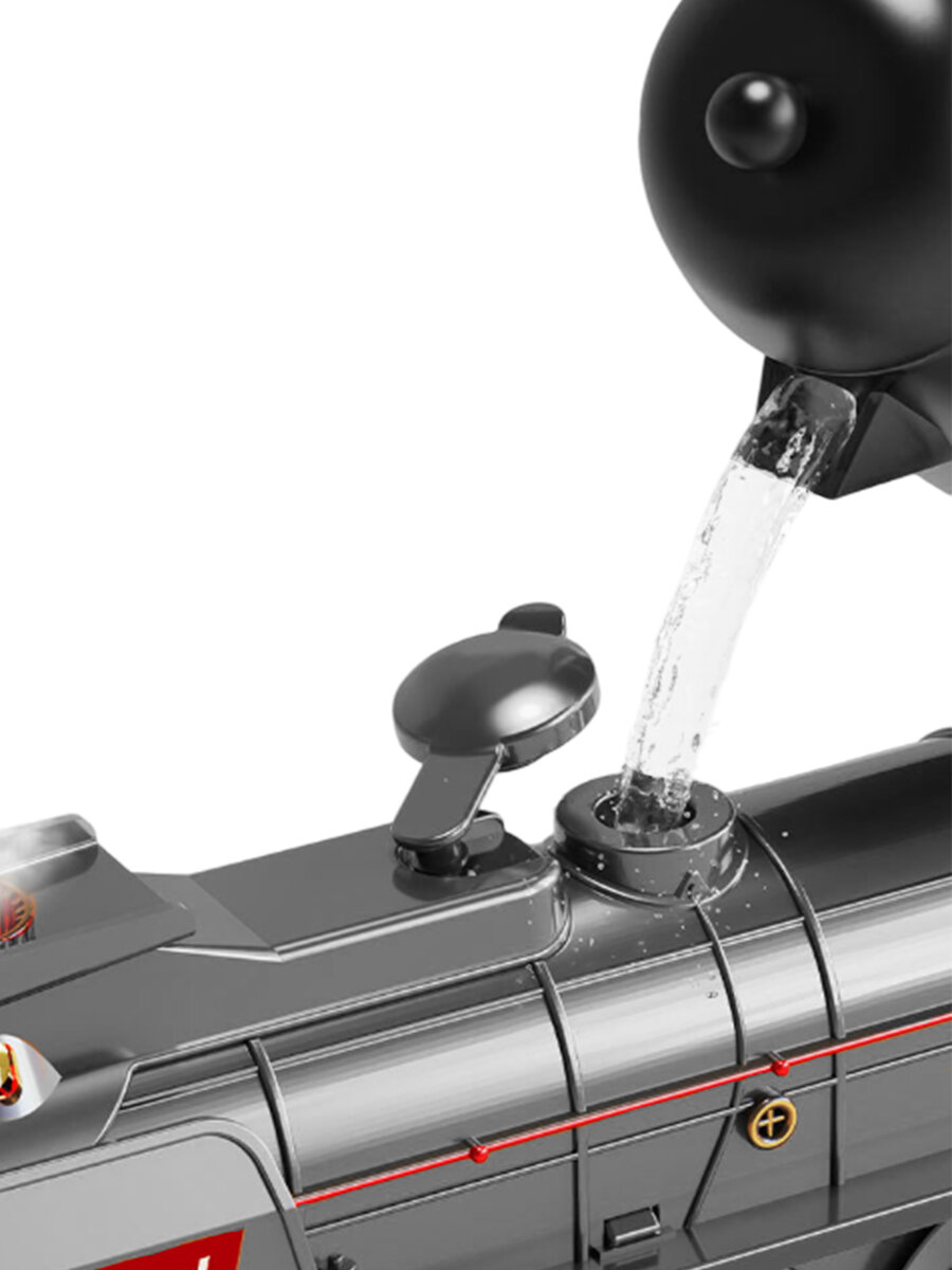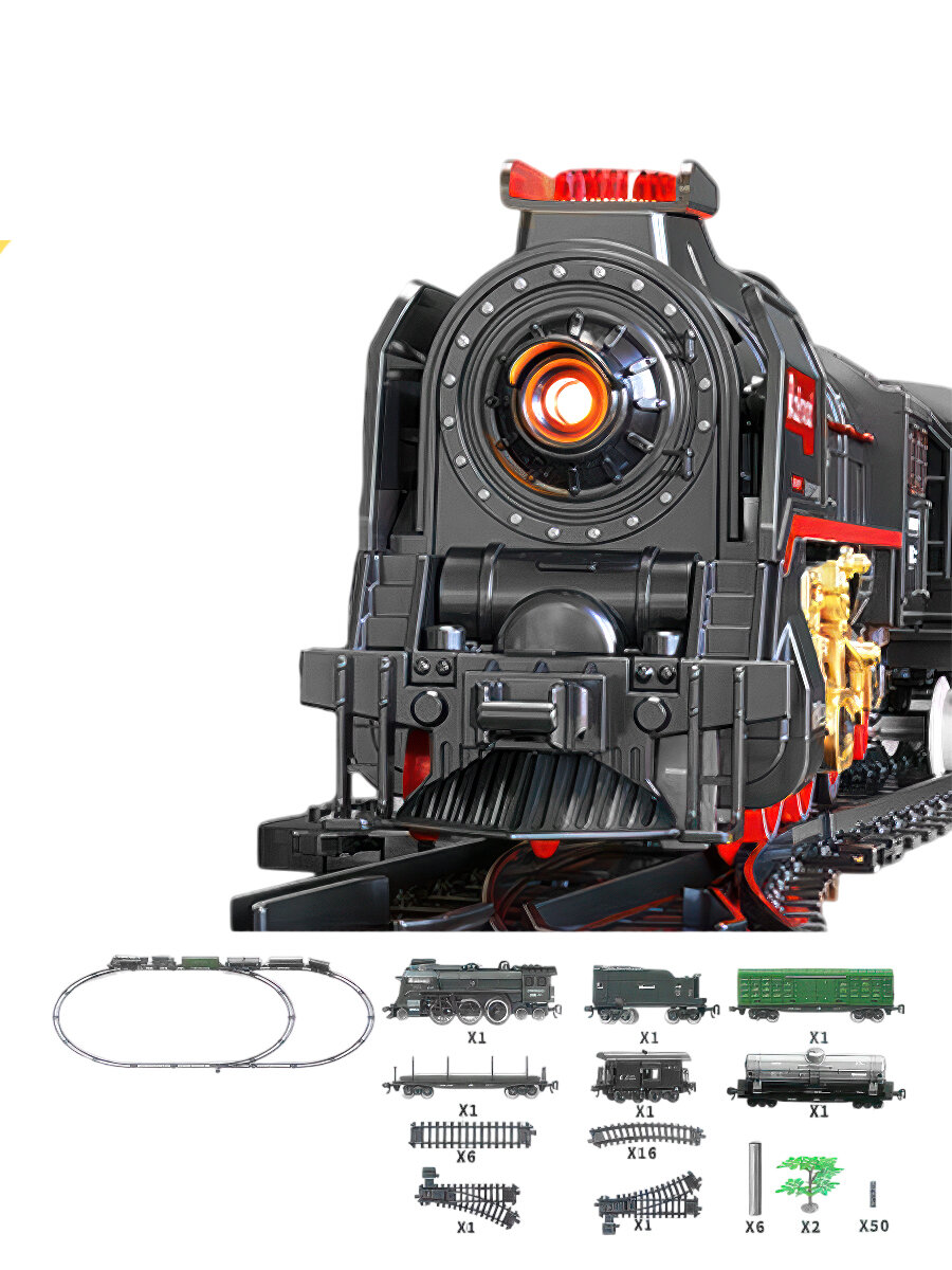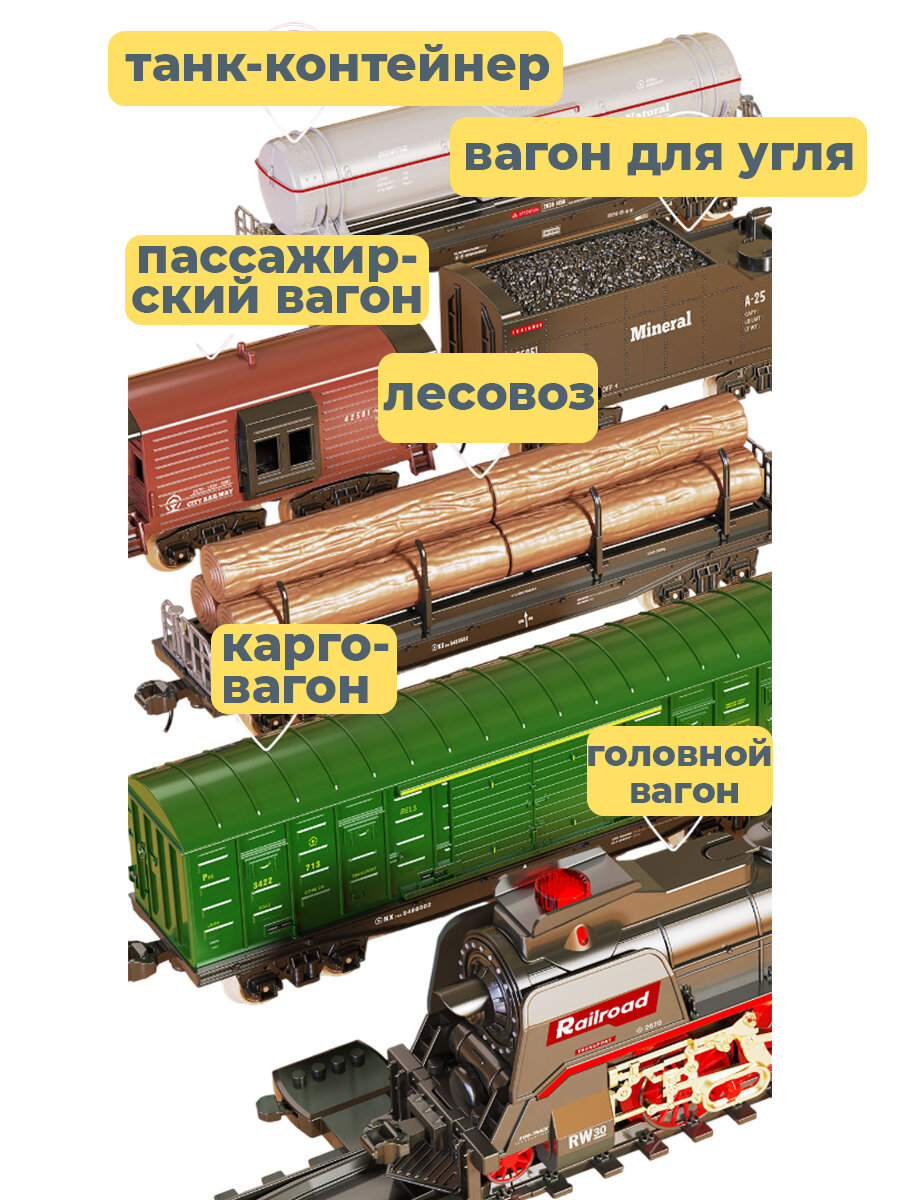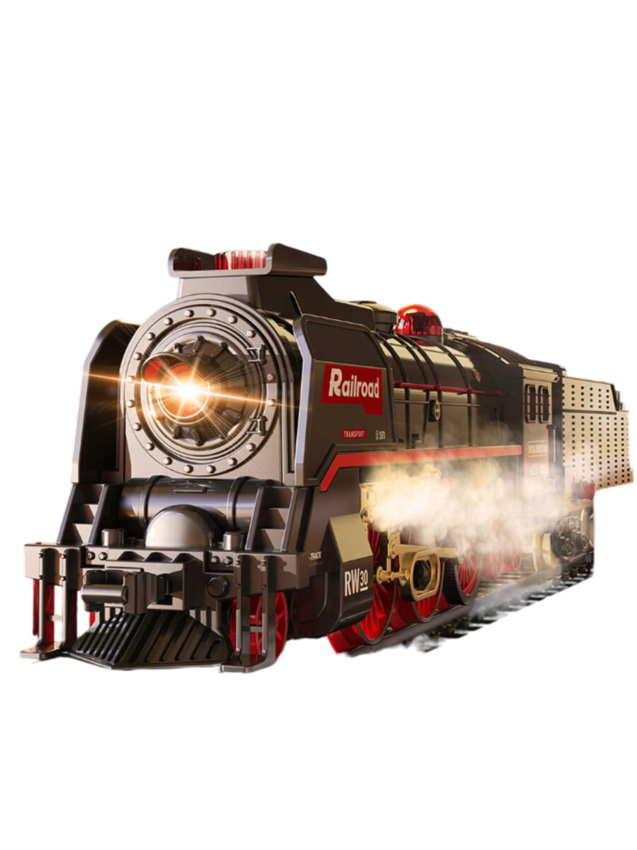 Ретро поезд паровоз с железной дорогой локомотив 5 вагонов движение свет звук пар 185x99 см