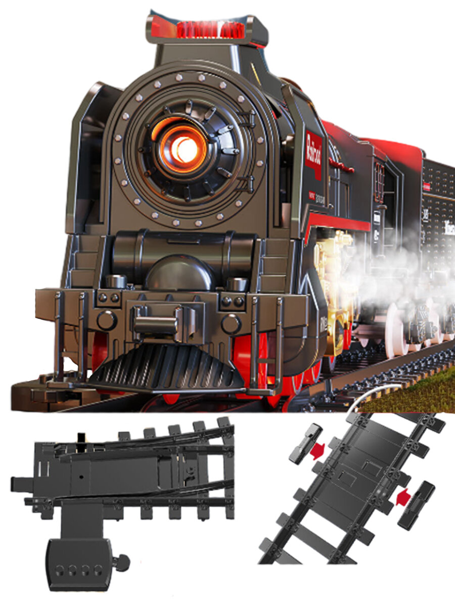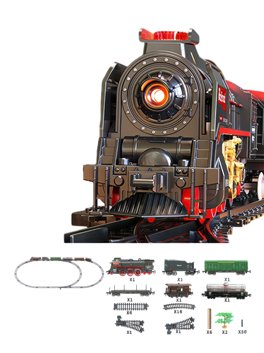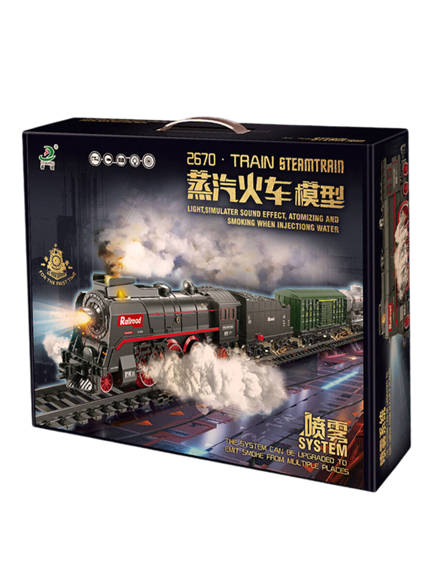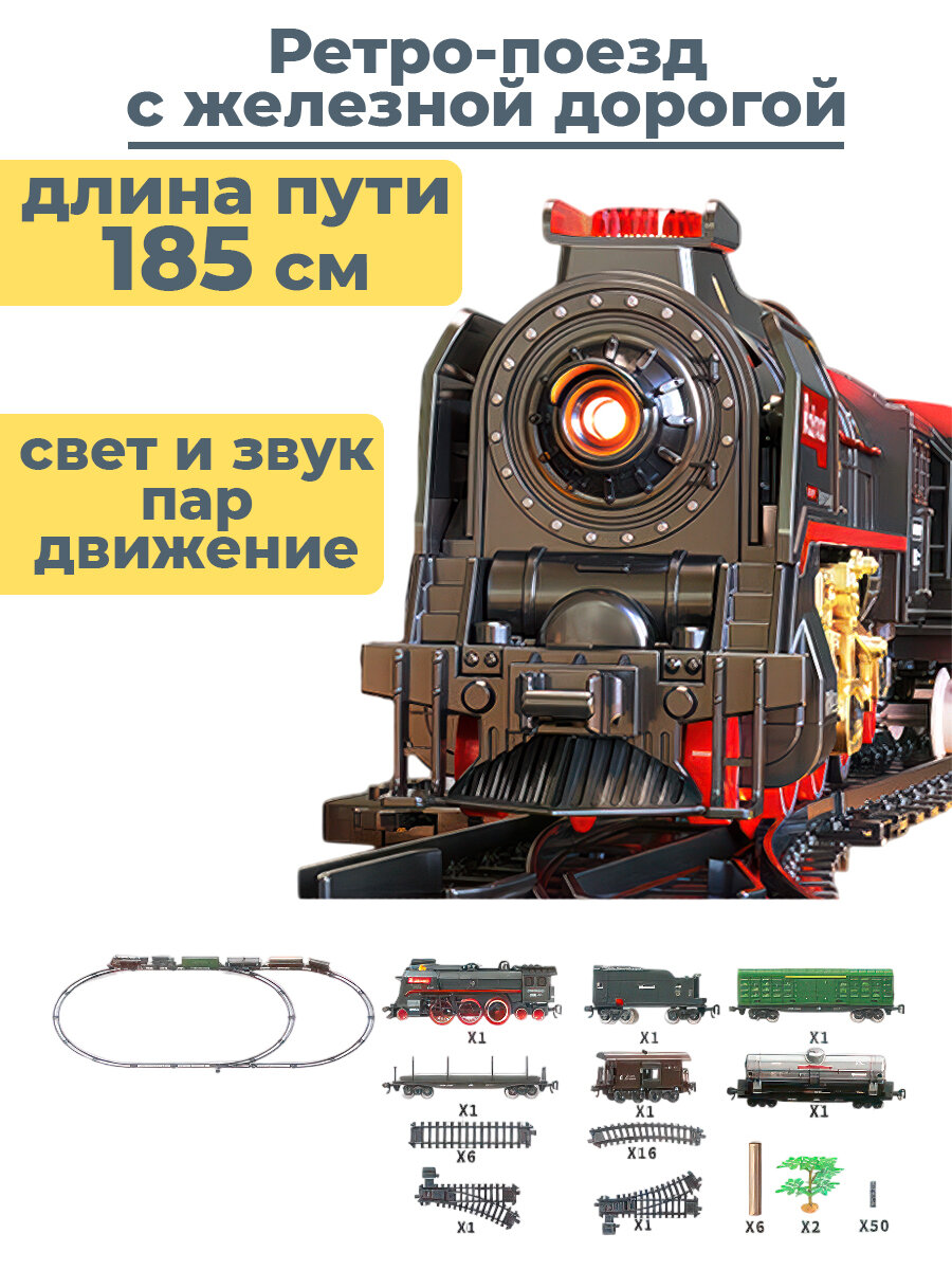 Купить Ретро поезд паровоз с железной дорогой локомотив 5 вагонов движение свет звук пар 185x99 см