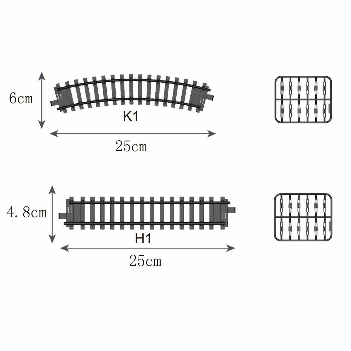 Дополнительный комплект прямых рельс H1 для паровоза , 18 штук