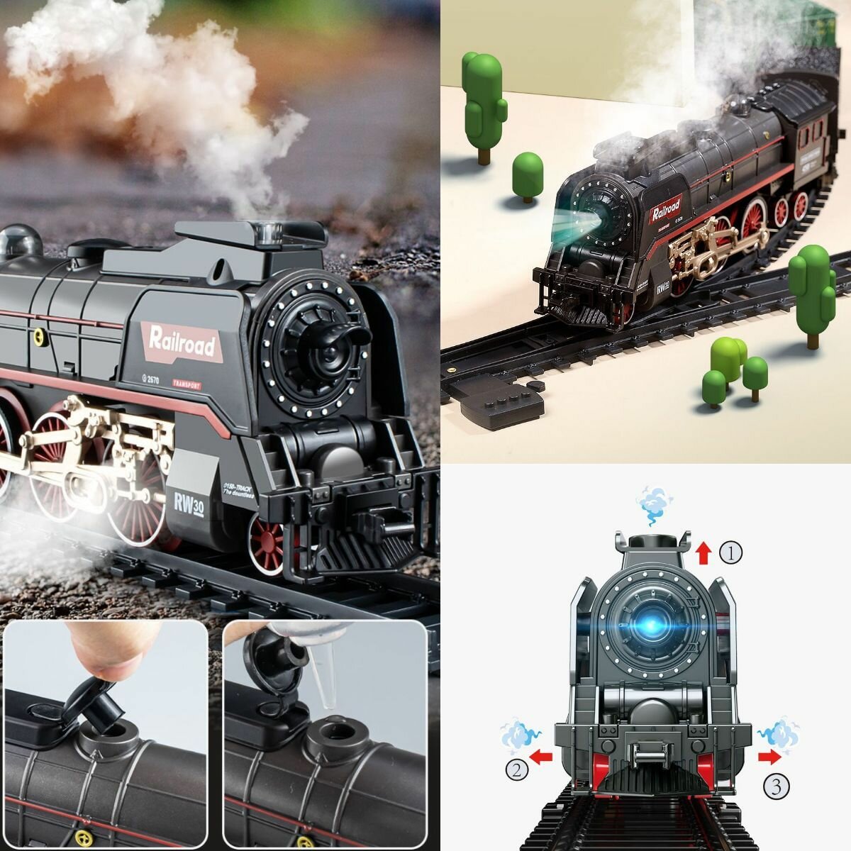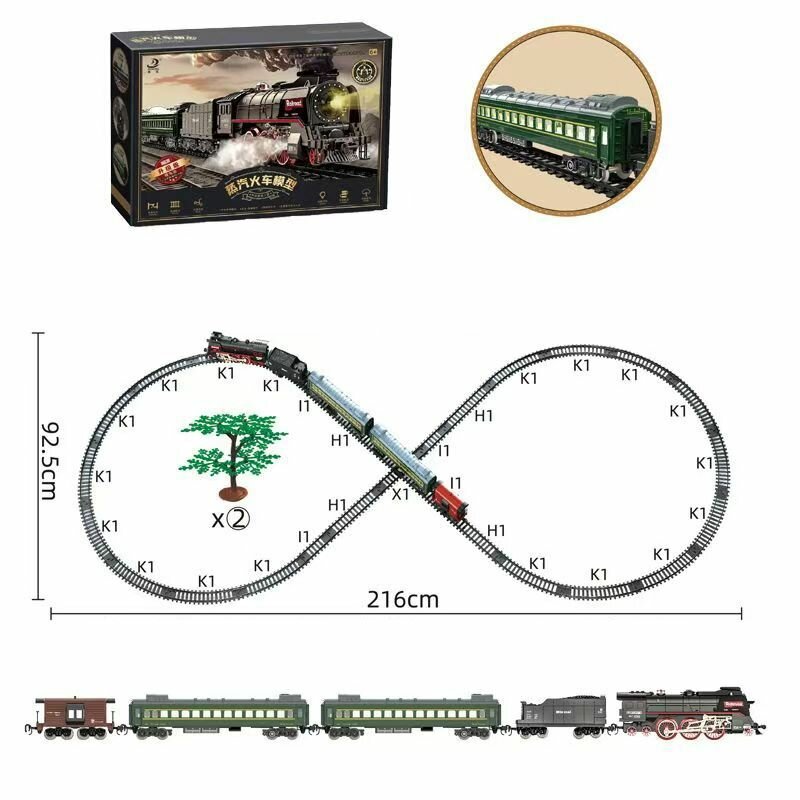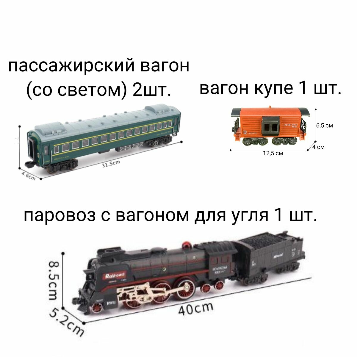 Железная дорога Fenming "Старинный Паровоз", с эффектами, 4 вагона, темно-бежевая интересное: