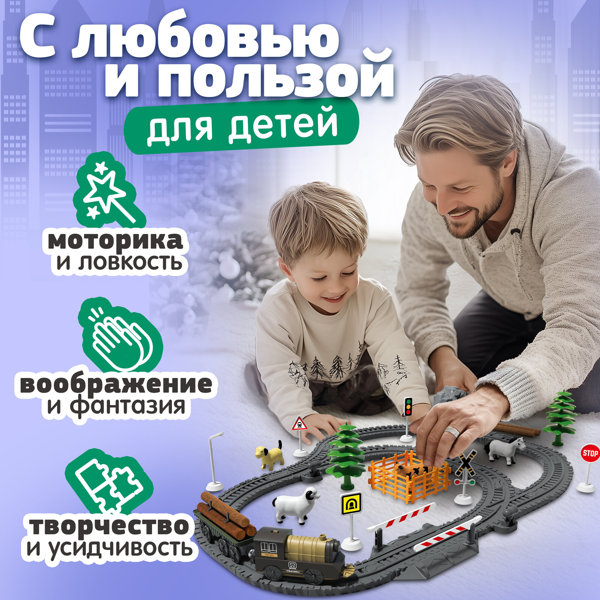 Zhorya Железная дорога с тоннелем 68 деталей, свет, звук ZYB-B3313 с 3 лет