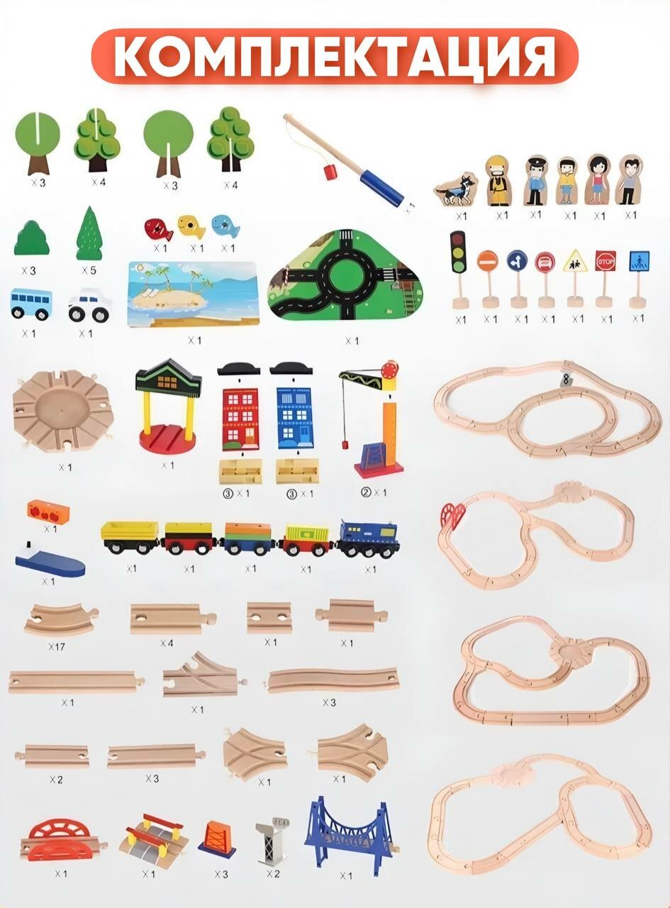 Деревянная Железная дорога, 108 деталей, механическая, для детей от 3 лет интересное: