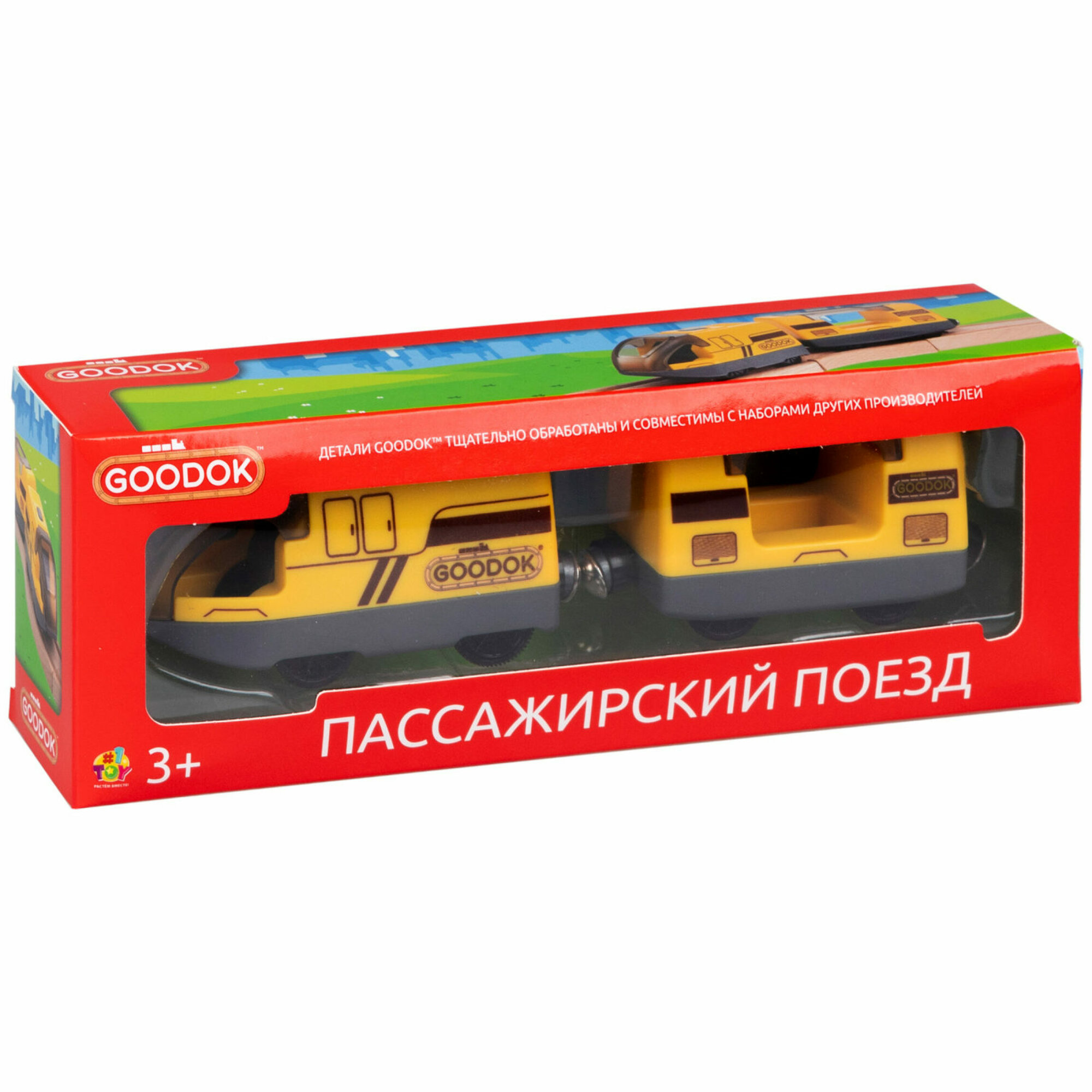 Электрический поезд 1TOY GOODOK «Пассажирский поезд», со звуком, 2 вагона, едет вперед и назад интересное: