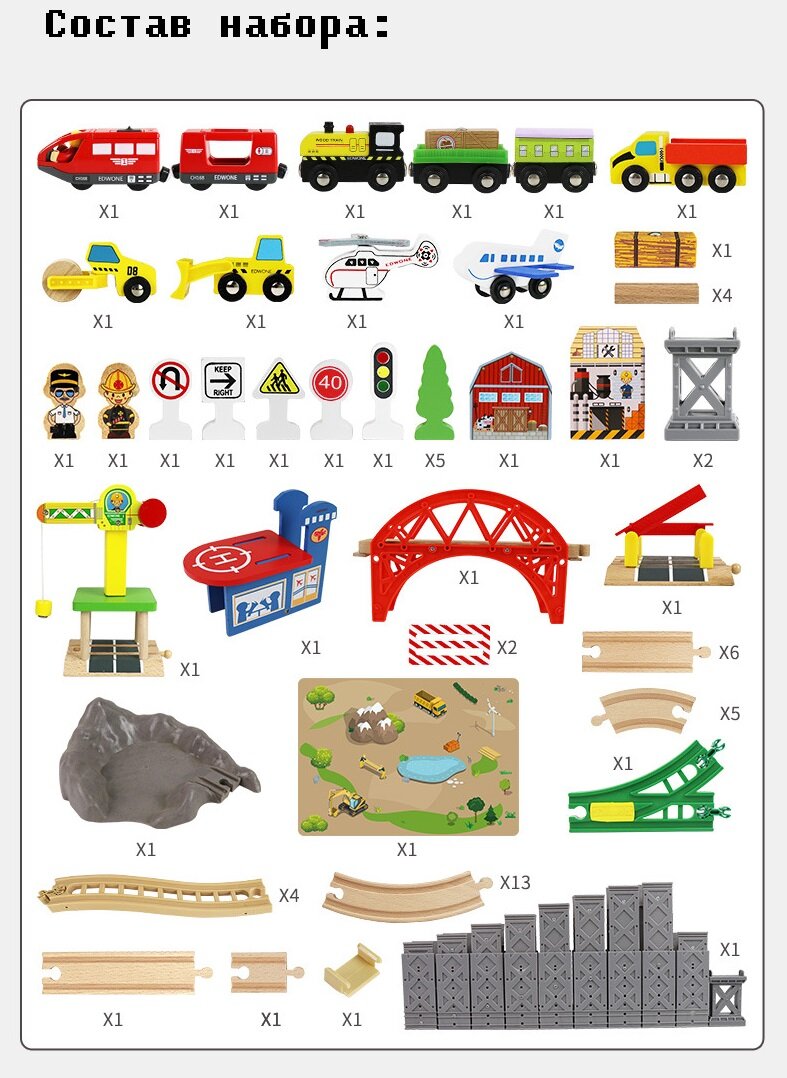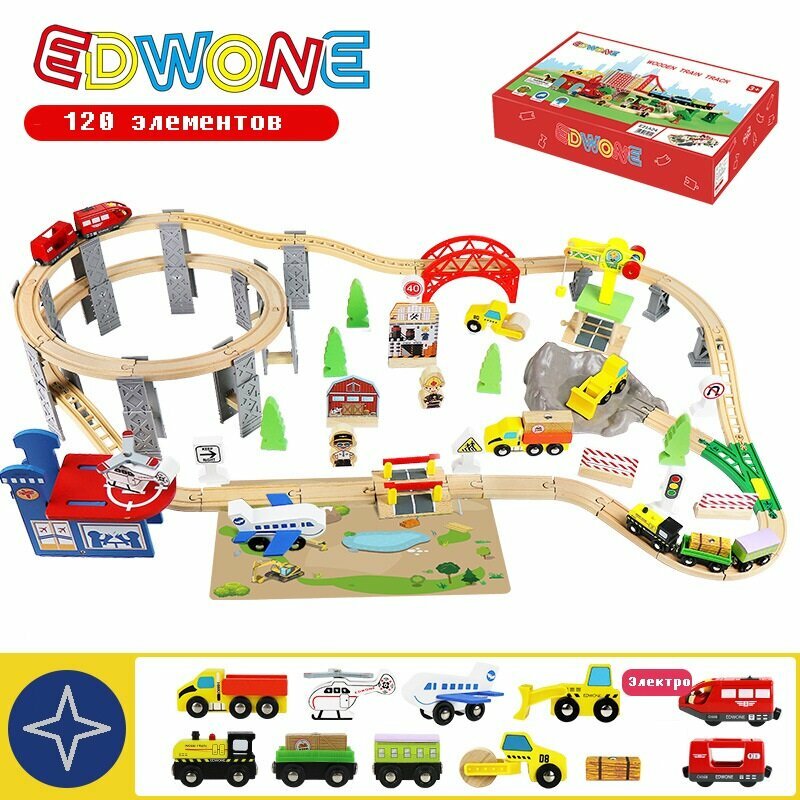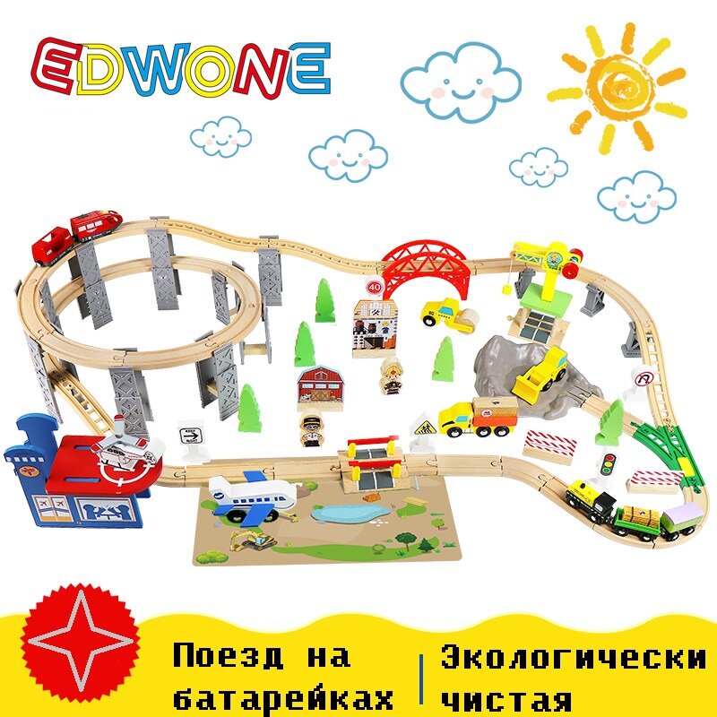 Деревянная железная дорога Edwone 120 элементов интересное:
