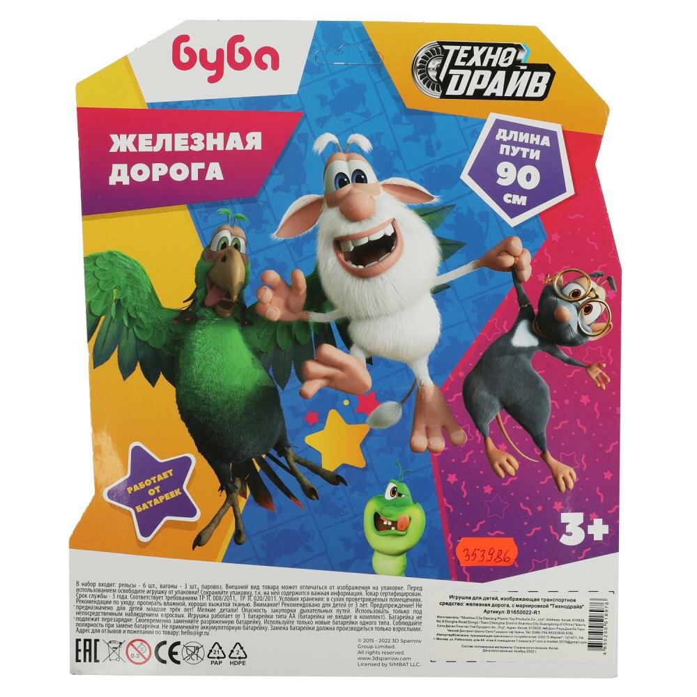 Железная дорога мультяшная Буба длина пути 90 см. Технодрайв B1650022-R1 интересное: