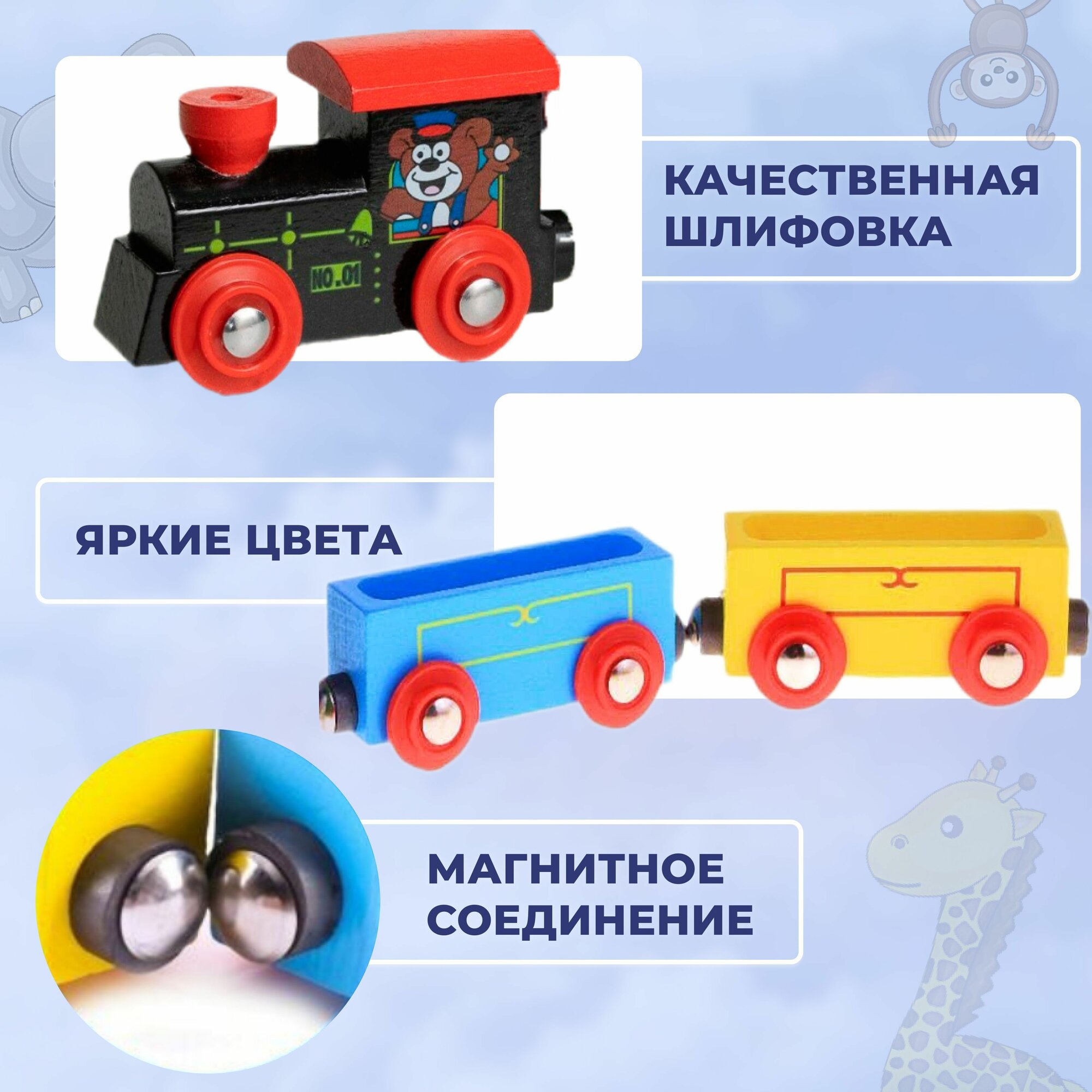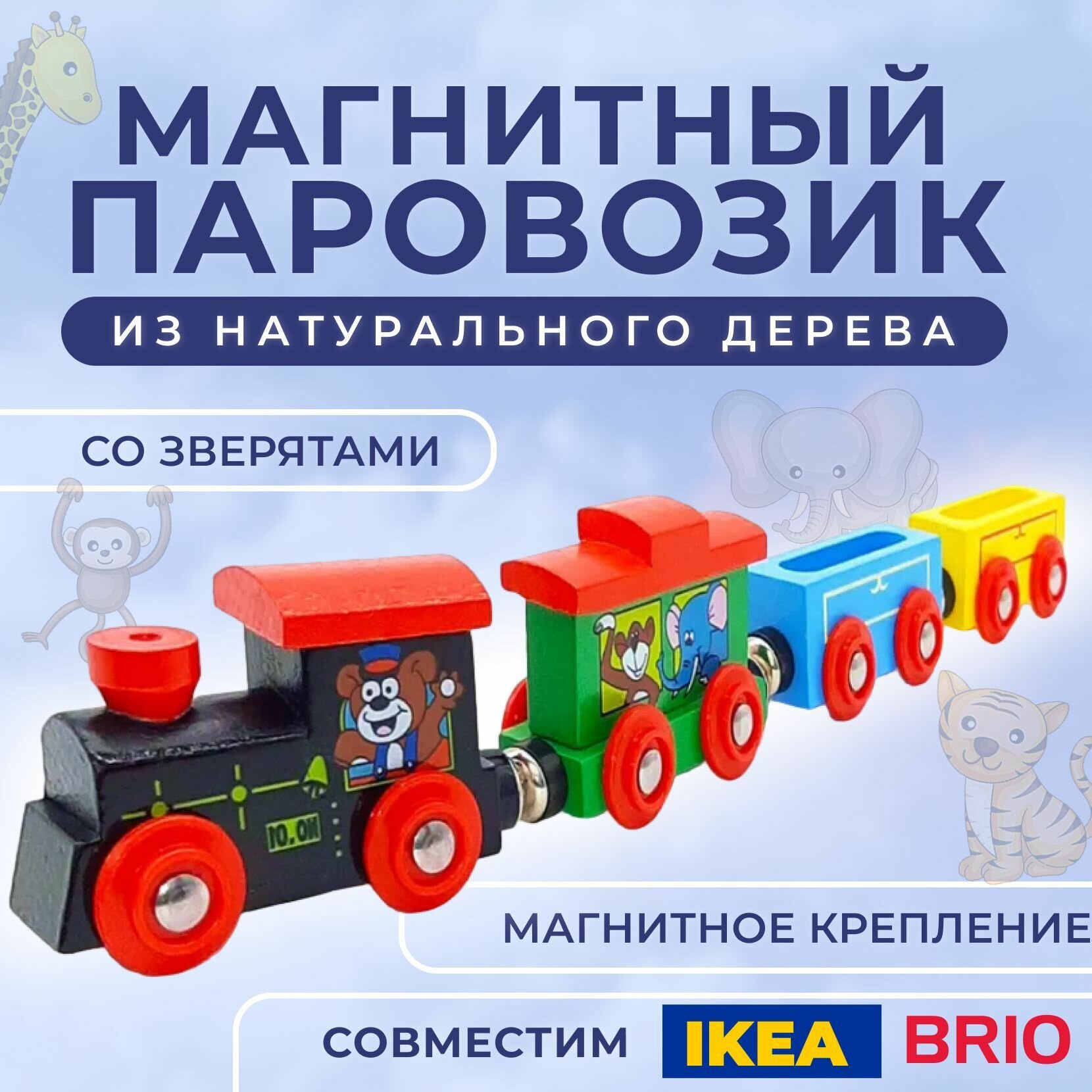 Поезд, паровоз деревянный на магнитах, локомотив, угольный вагончик интересное: