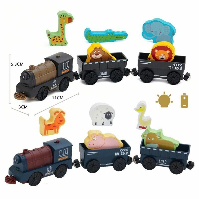 Купить Электропоезд на батарейках для деревянной железной дороги, паровоз электрический с грузовыми вагонами и животными