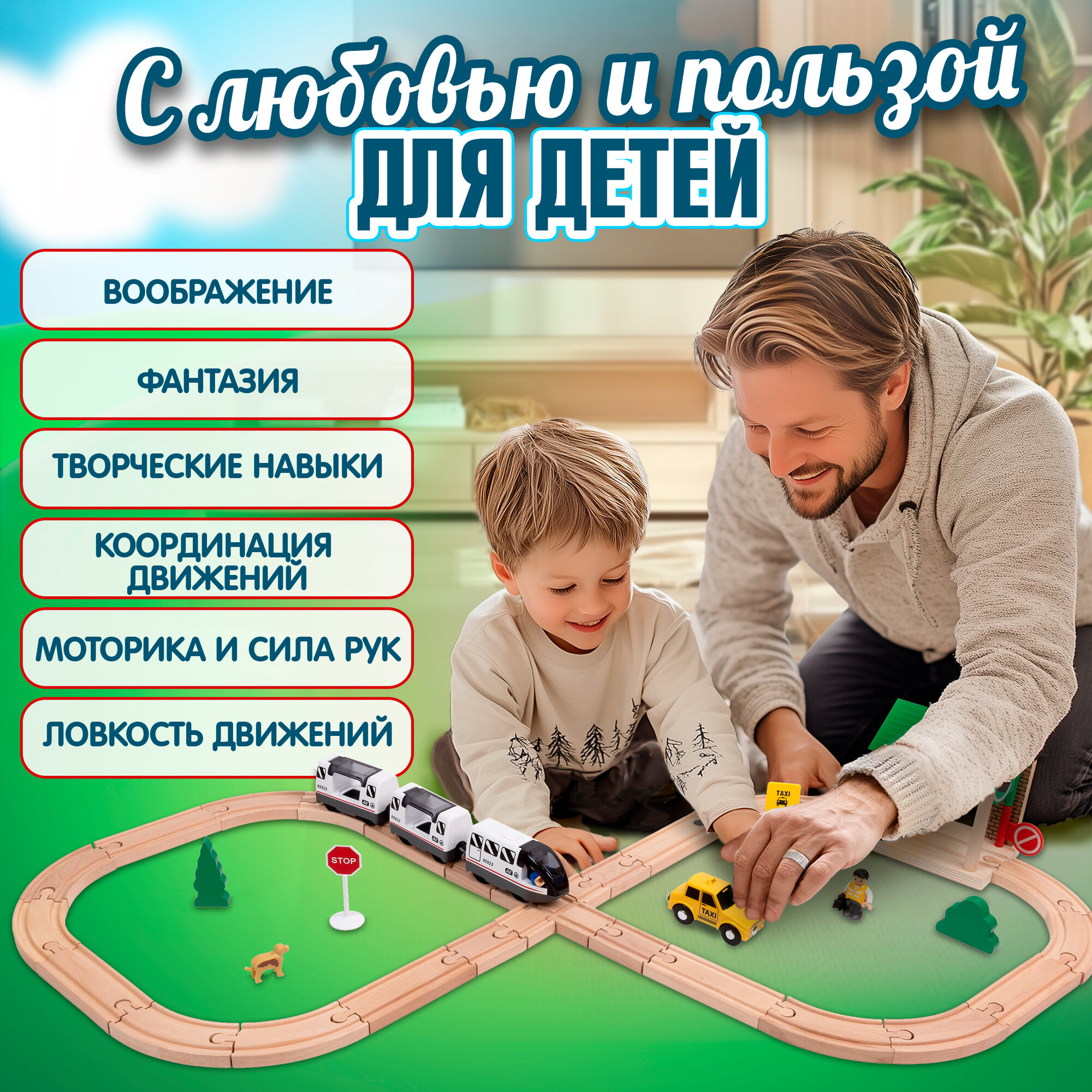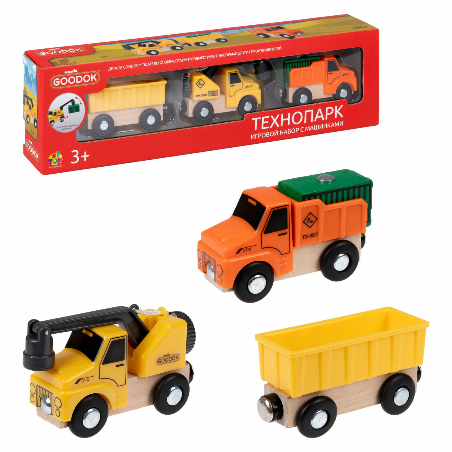 Поезд магнитный «Технопарк» 1TOY Goodok для деревянной железной дороги интересное: