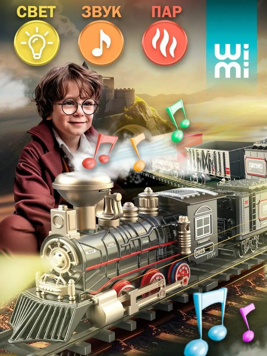 Железная дорога детская с электропоездом и вагонами WiMi, на батарейках, поезд с паром интересное: