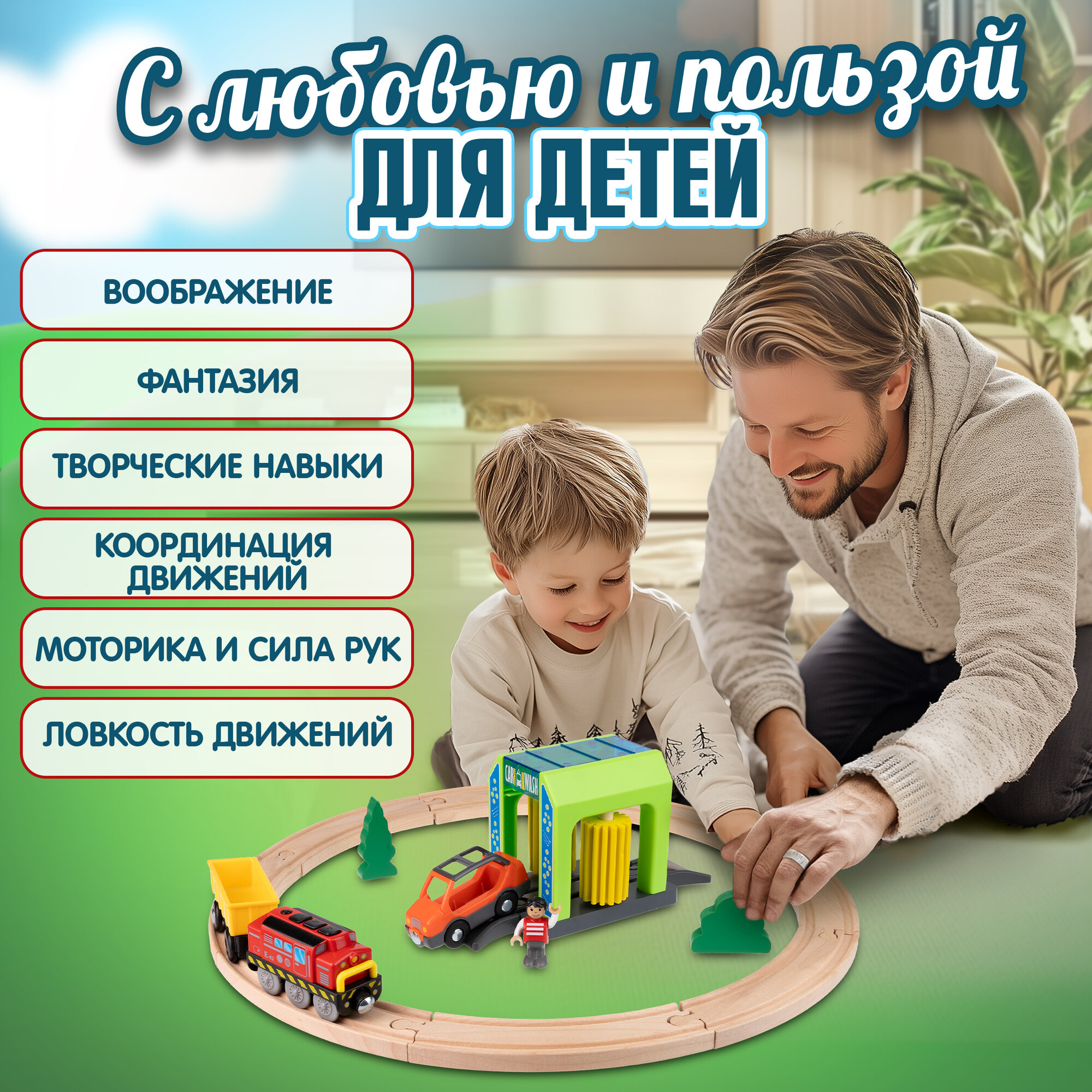 Деревянная железная дорога 1TOY GOODOK с электропоездом, 24 элемента интересное: