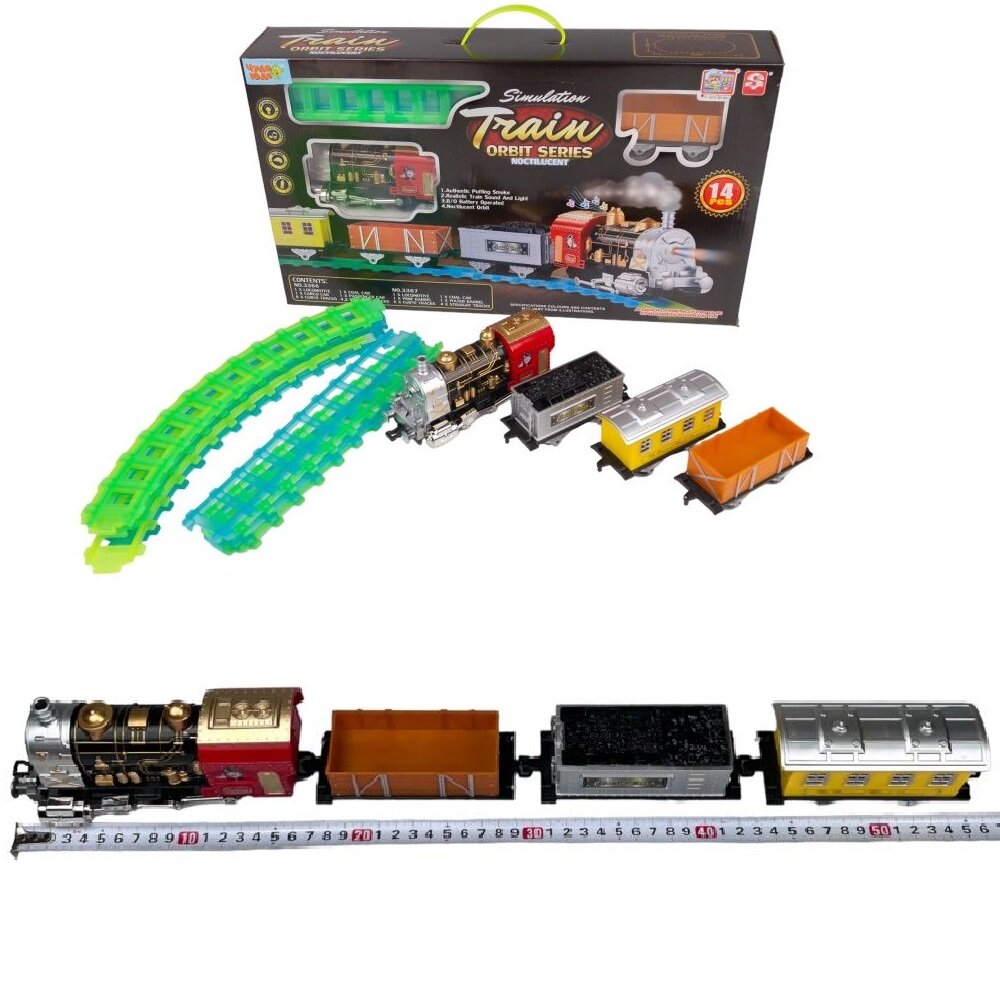 Купить Игровой набор детская Железная дорога на батарейках, свет, звук, дым, размер пути 135 х 73 см, 3366