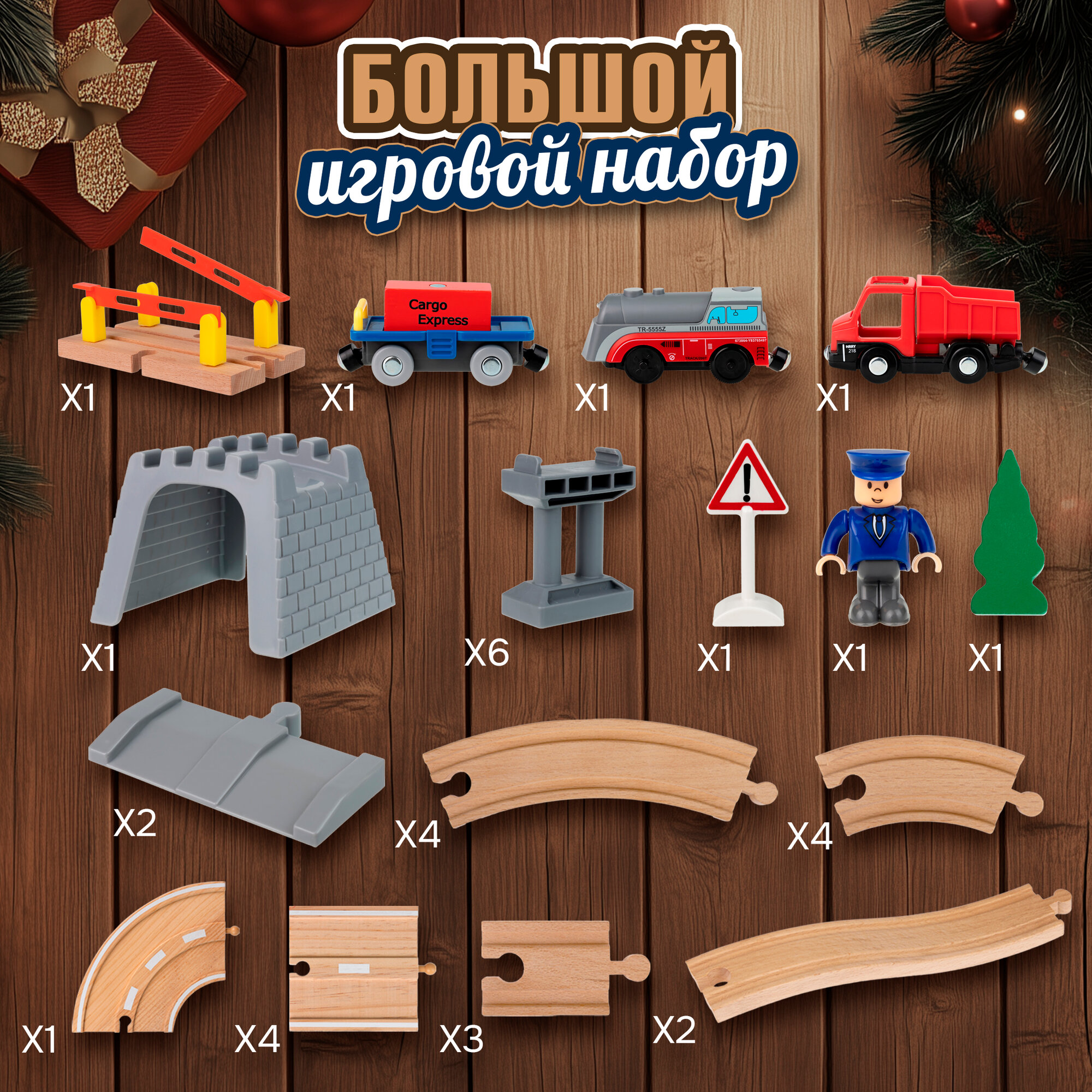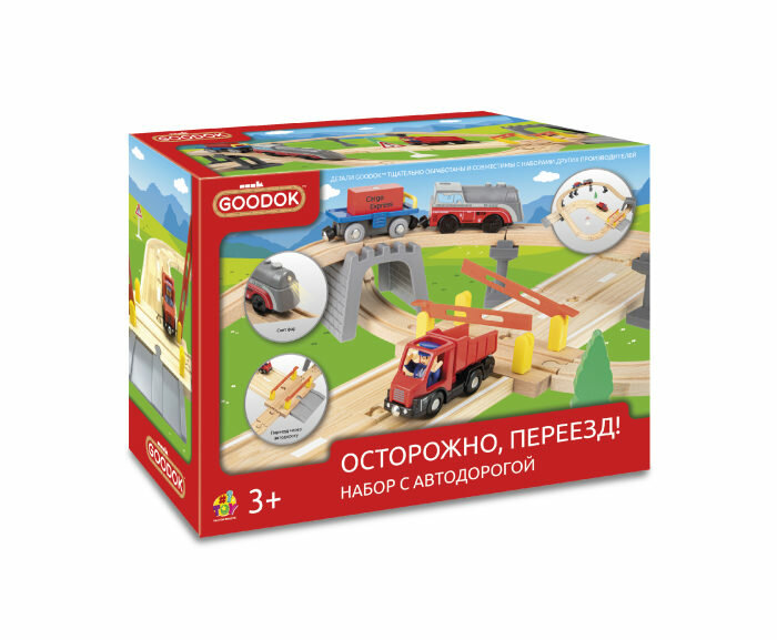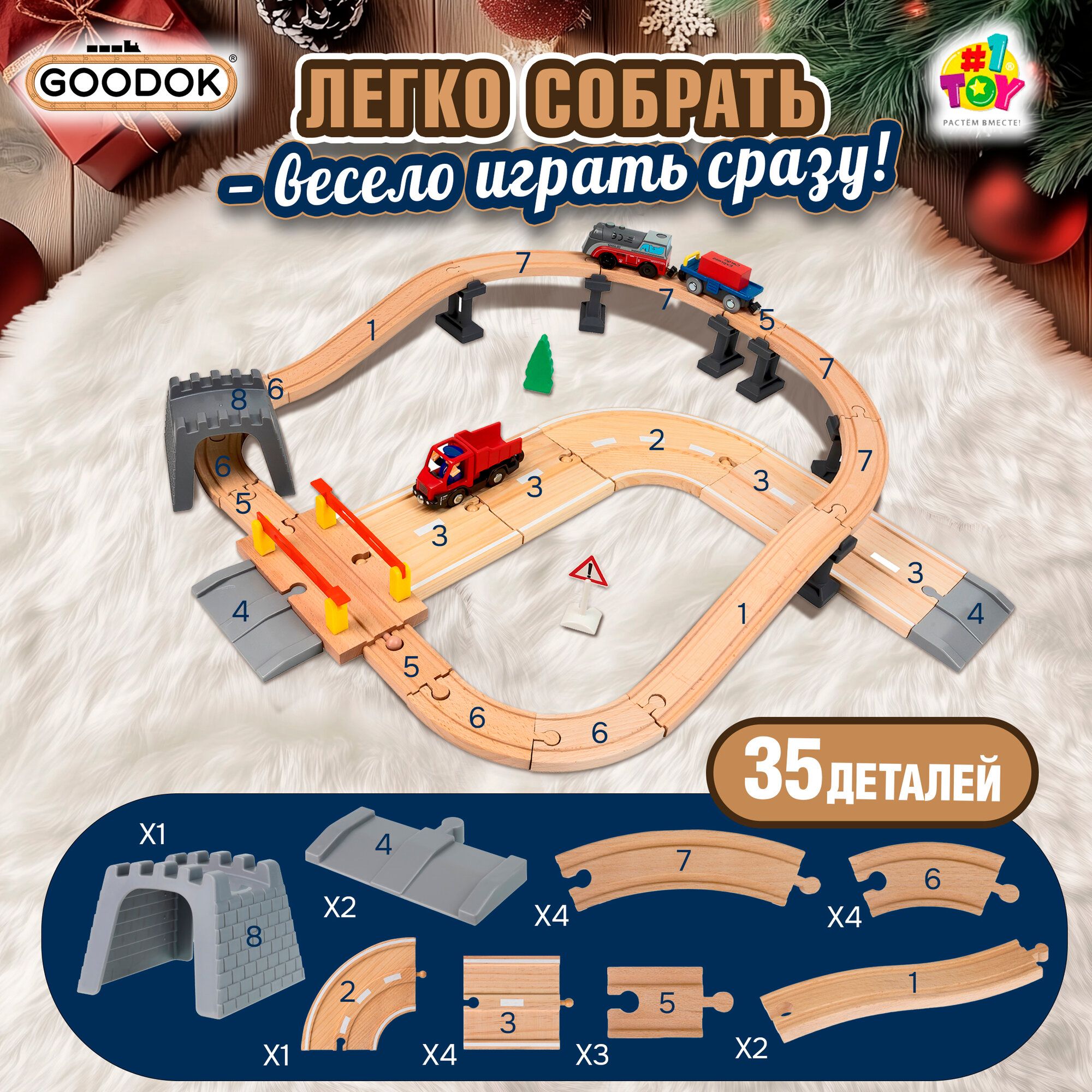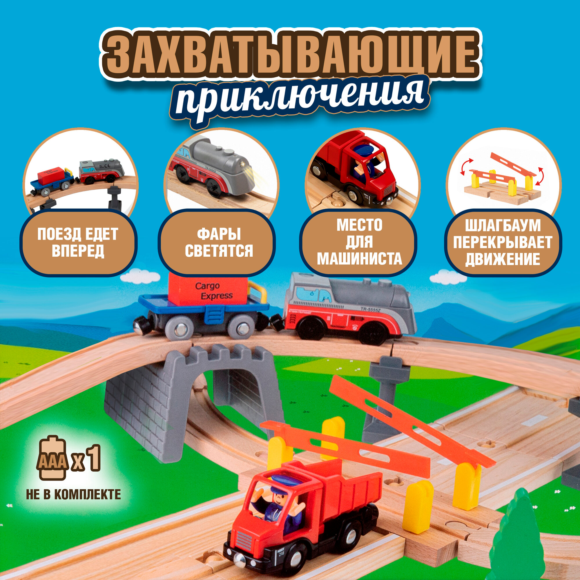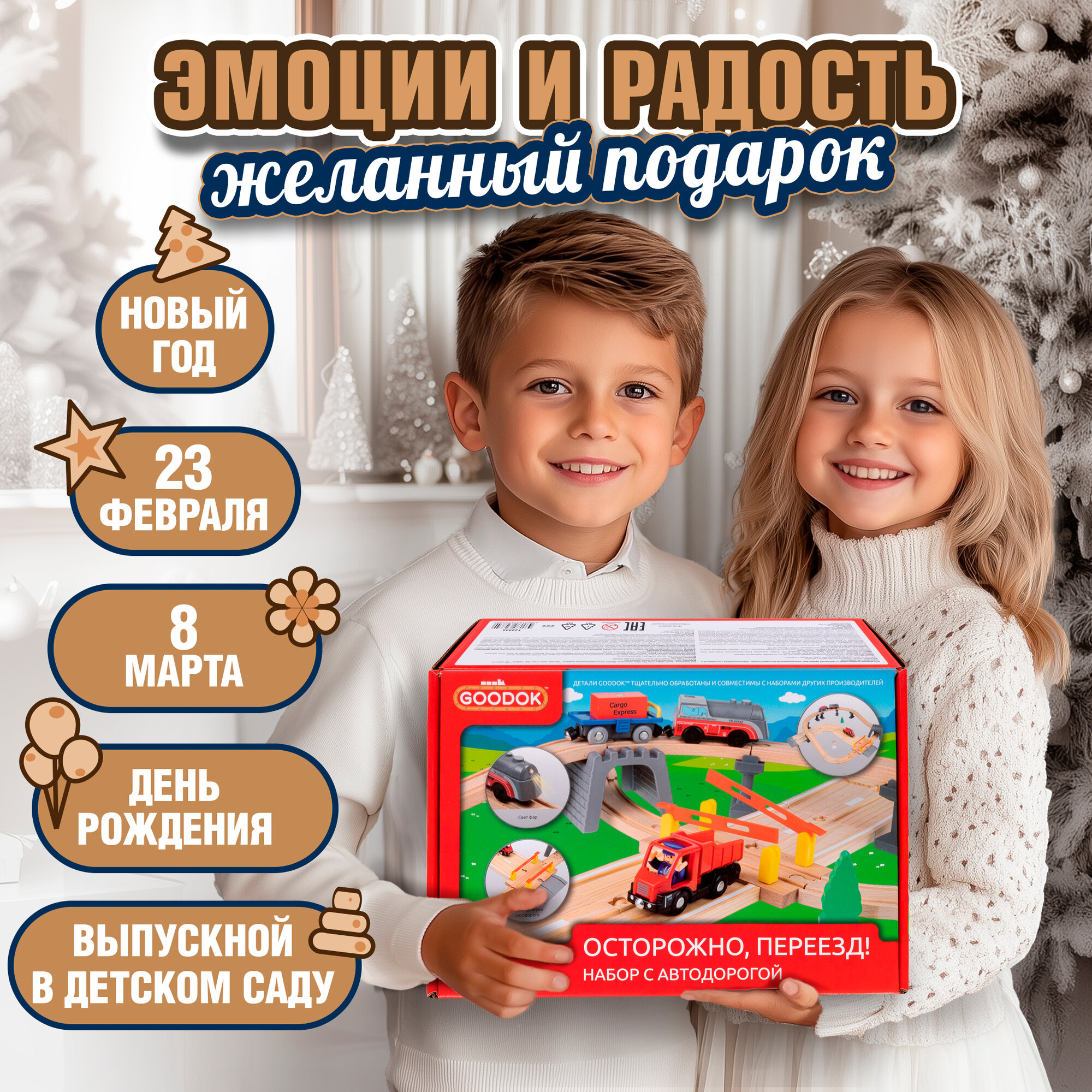 Деревянная железная дорога 1TOY GOODOK "Осторожо, переезд!" с электропоездом и аксессуарами, 35 деталей интересное: