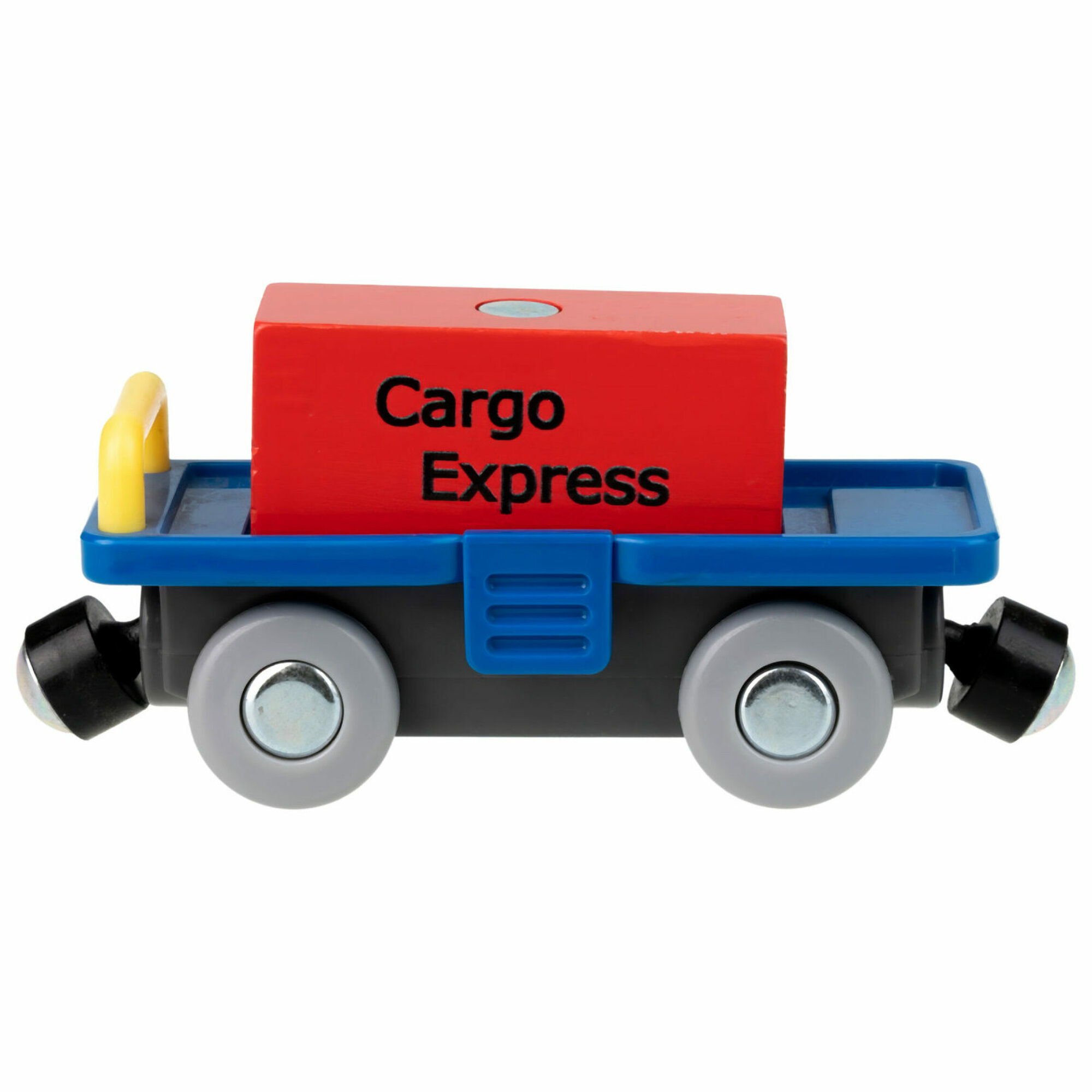 Игровой набор ж/д 1TOY Goodok "В добрый путь!" с синим дерев. грузовым локомотивом с вагоном с 3 бревнами,16 дет