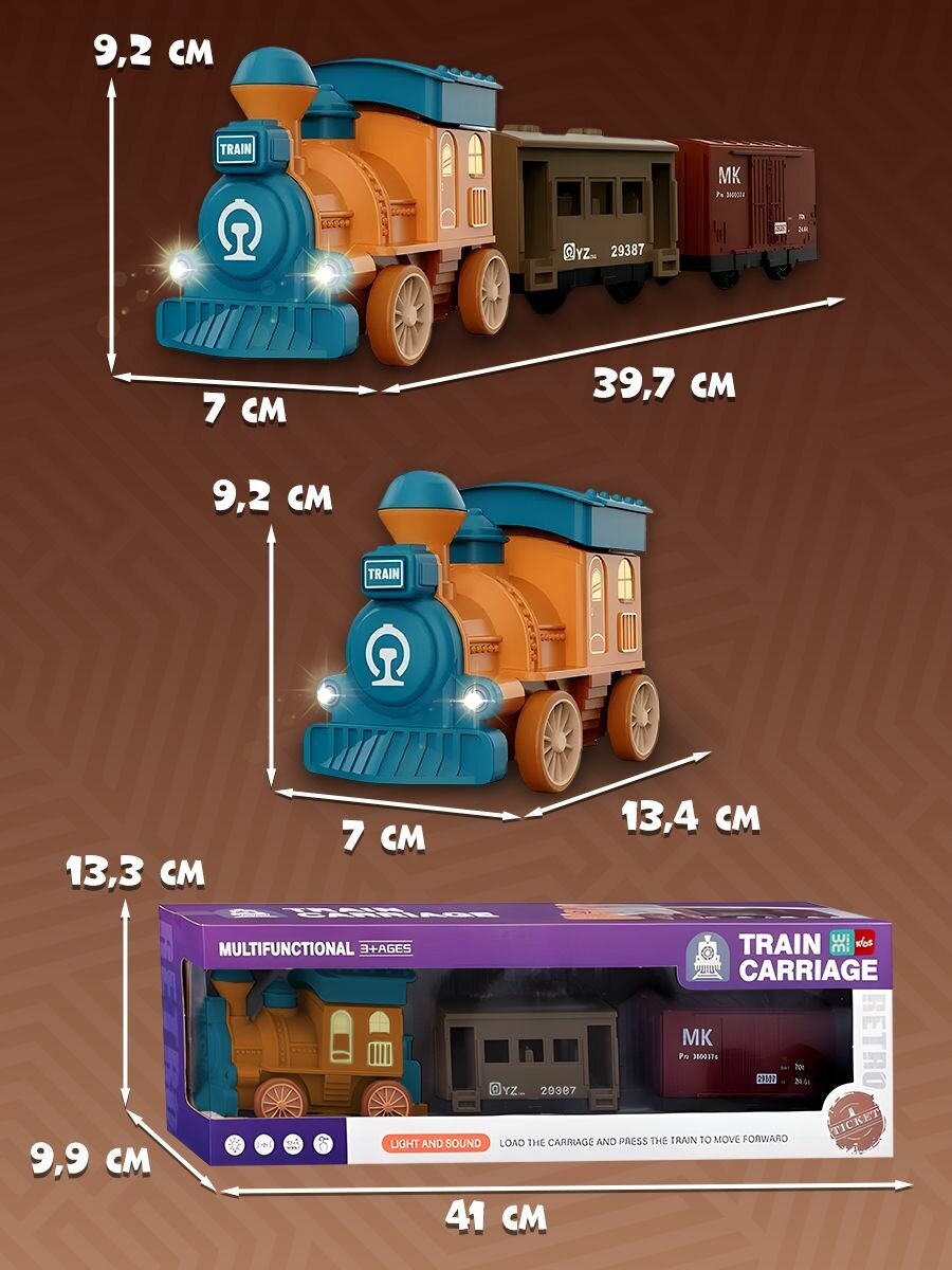 Паровозик для малышей WiMi, светящийся поезд с вагонами и музыкой интересное: