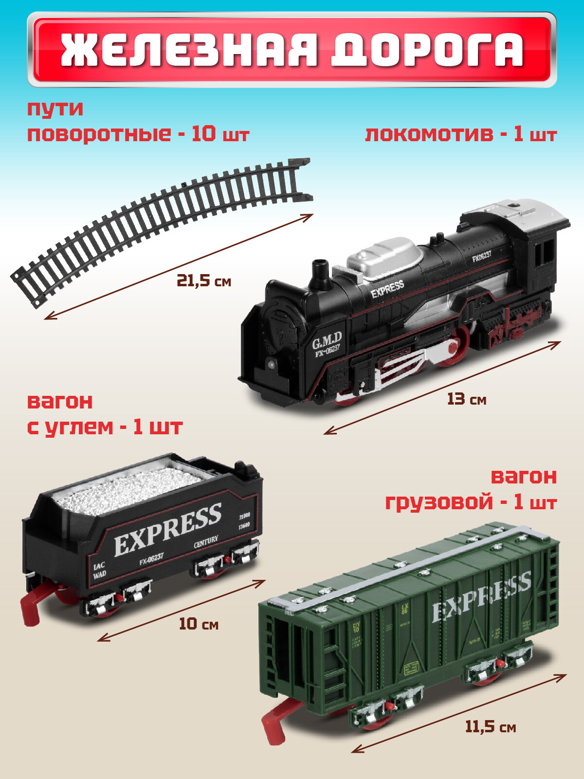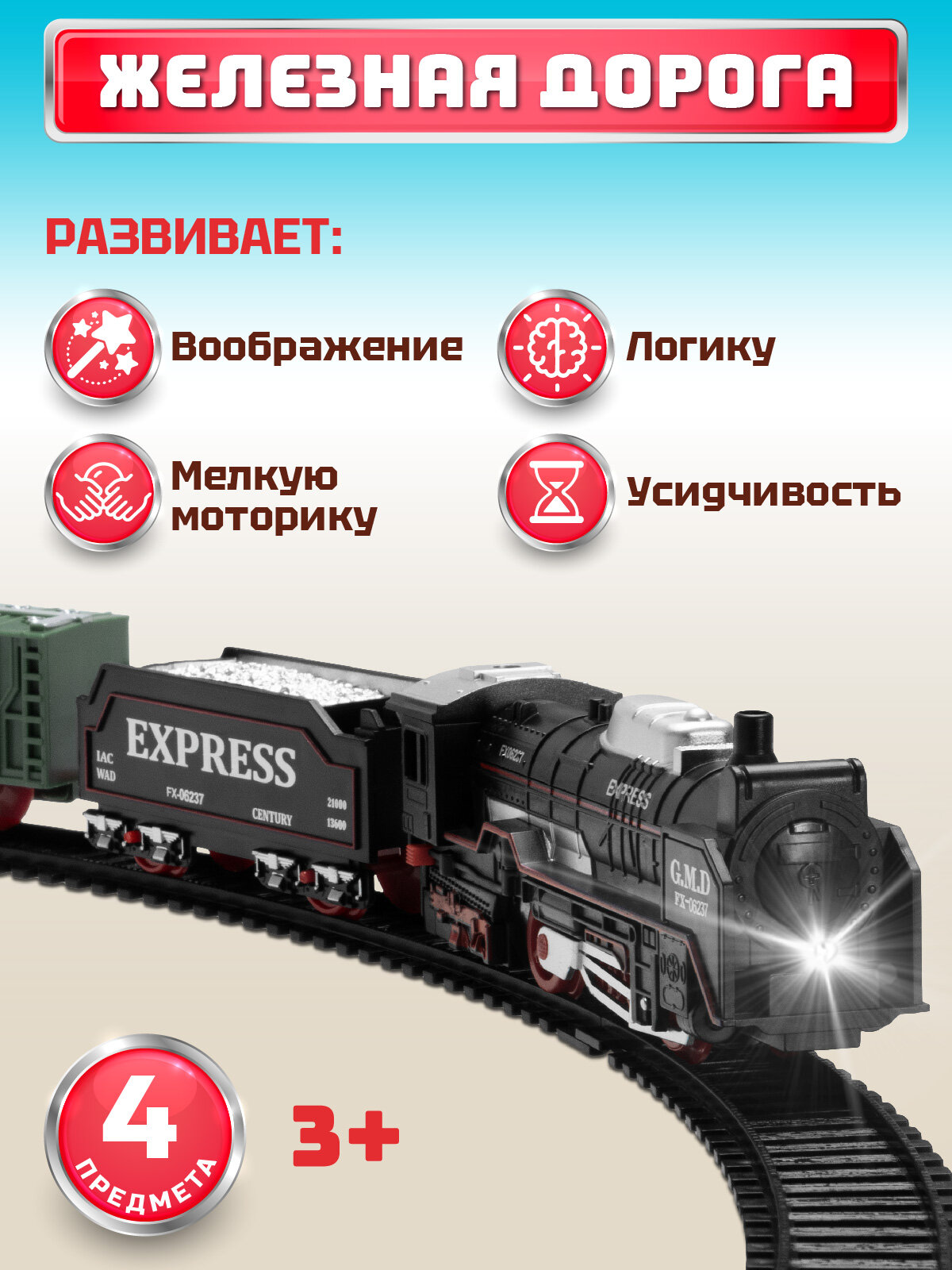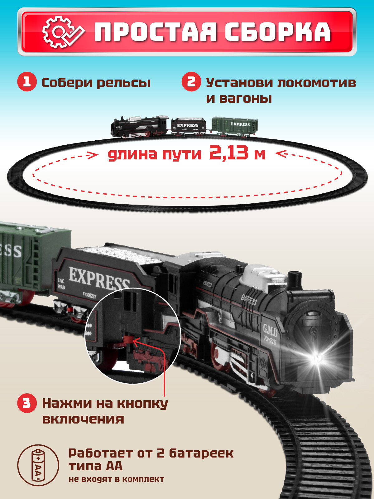 СохранитьЖелезная дорога классическая, локомотив/вагоны, игровой набор, играем в профессии, машинист поезда, свет, JB0405137 интересное: