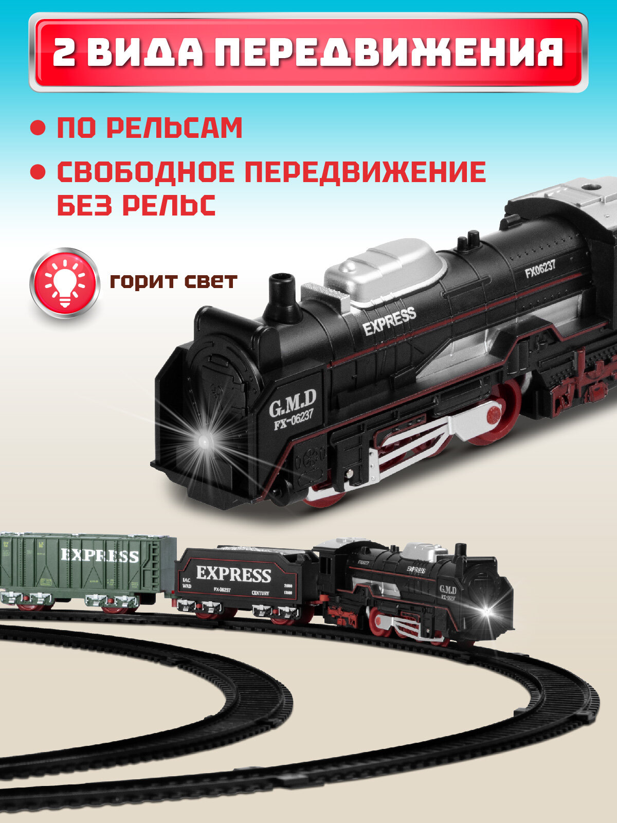 Железная дорога классическая, локомотив/вагоны, игровой набор, играем в профессии, машинист поезда, свет, JB0402242