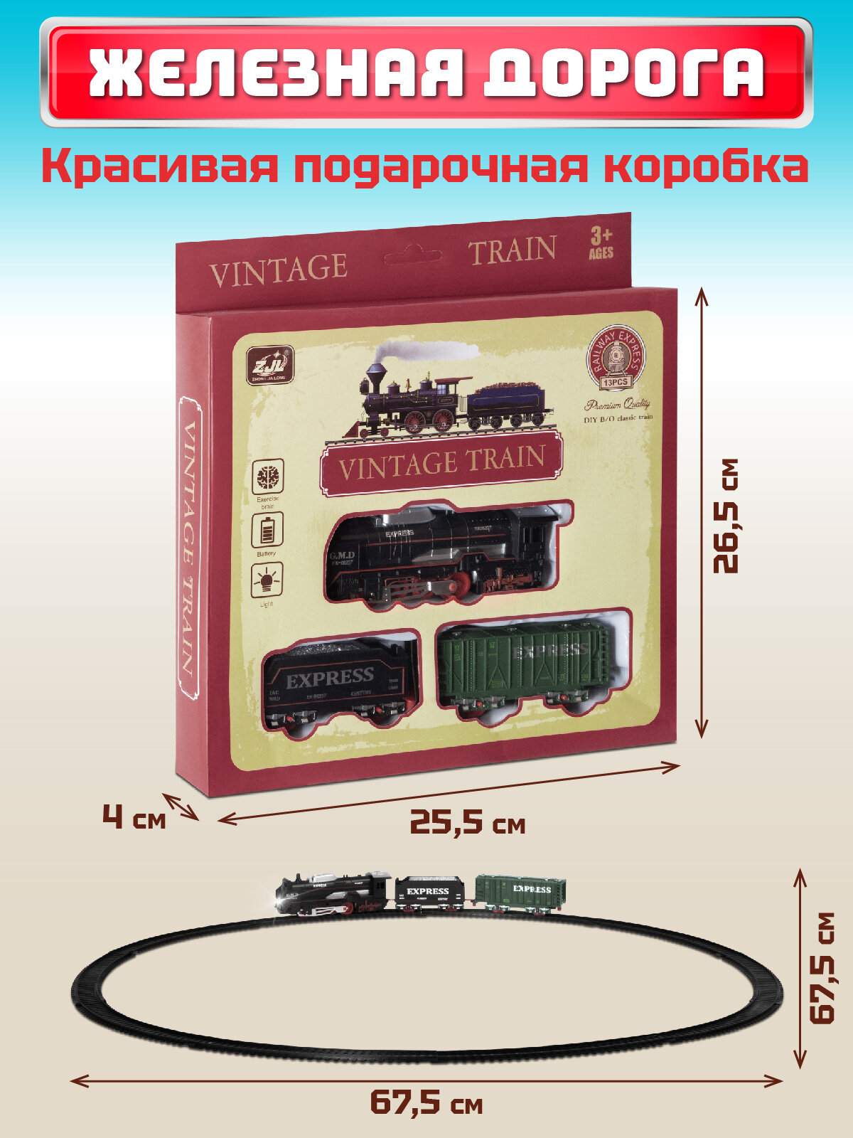Ниже Вы можете прочитать отзывы на Железная дорога классическая, локомотив/вагоны, игровой набор, играем в профессии, машинист поезда, свет, JB0405137, ознакомится с подробными характеристиками, посмотреть интересные обзоры и фотографии на Железная дорога классическая, локомотив/вагоны, игровой набор, играем в профессии, машинист поезда, свет, JB0405137.