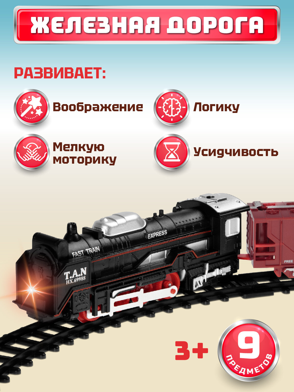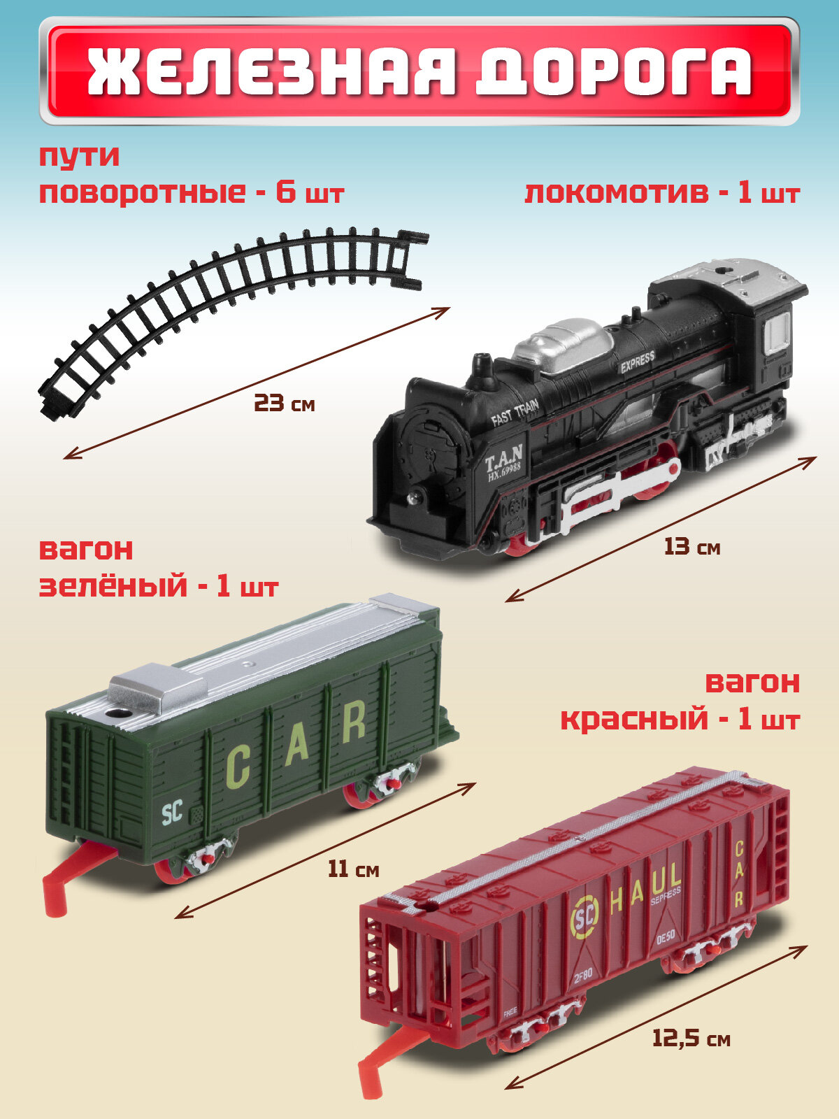 СохранитьЖелезная дорога классическая, локомотив/вагоны, игровой набор, играем в профессии, машинист поезда, свет, JB0402242 интересное: