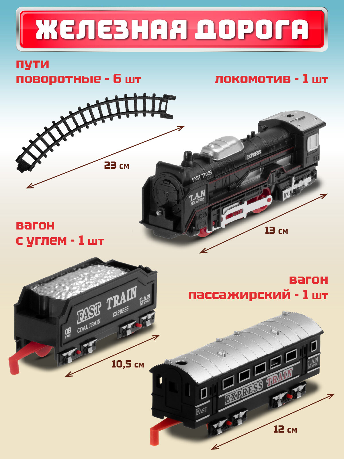СохранитьЖелезная дорога классическая, локомотив/вагоны, игровой набор, играем в профессии, машинист поезда, свет, JB0402241 интересное: