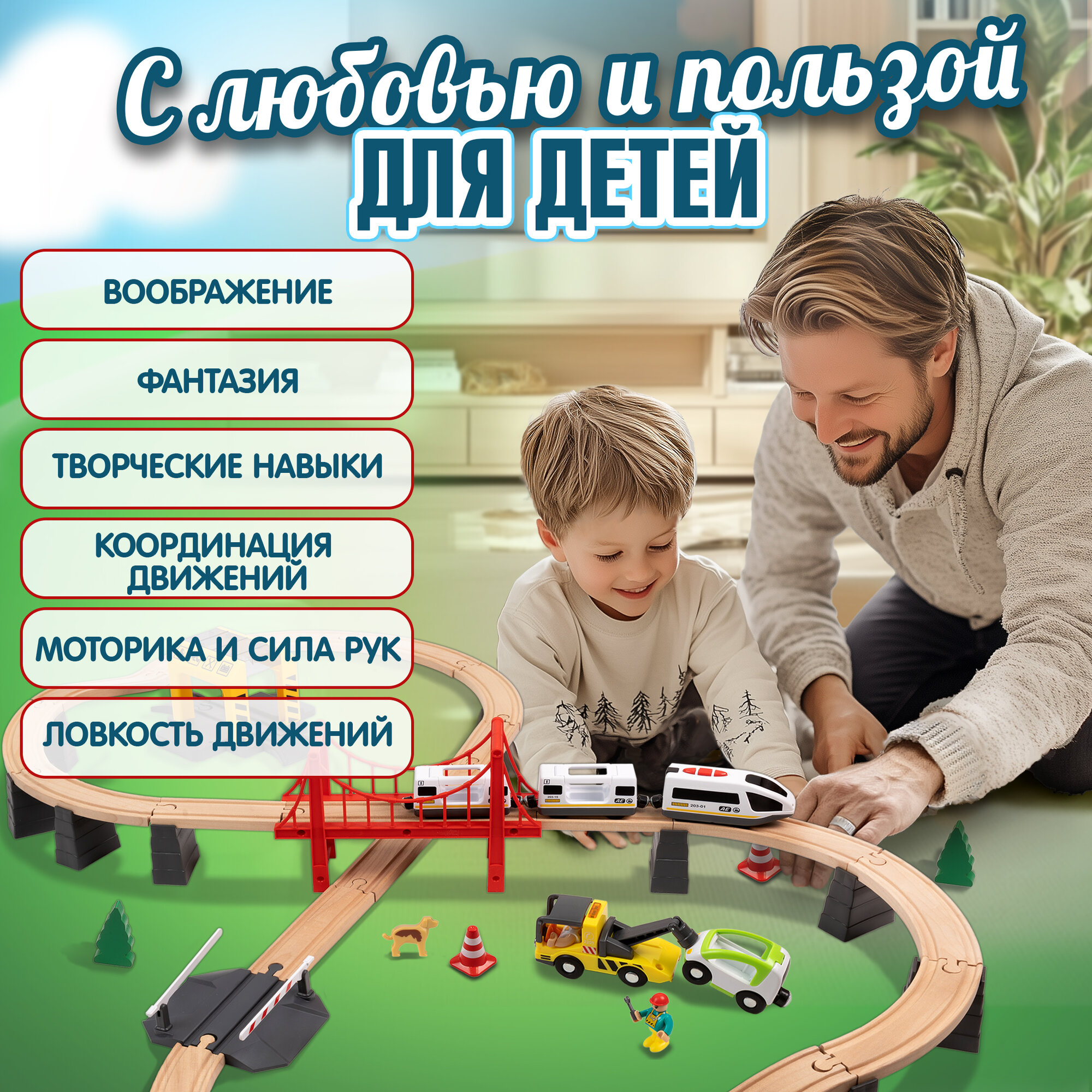 Купить Деревянная железная дорога 1TOY GOODOK с электропоездом, 57 элементов