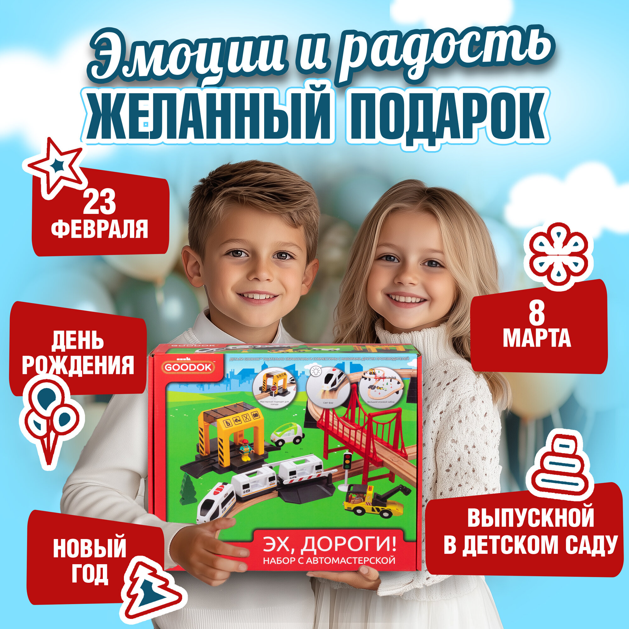 Деревянная железная дорога 1TOY GOODOK с электропоездом, 57 элементов интересное: